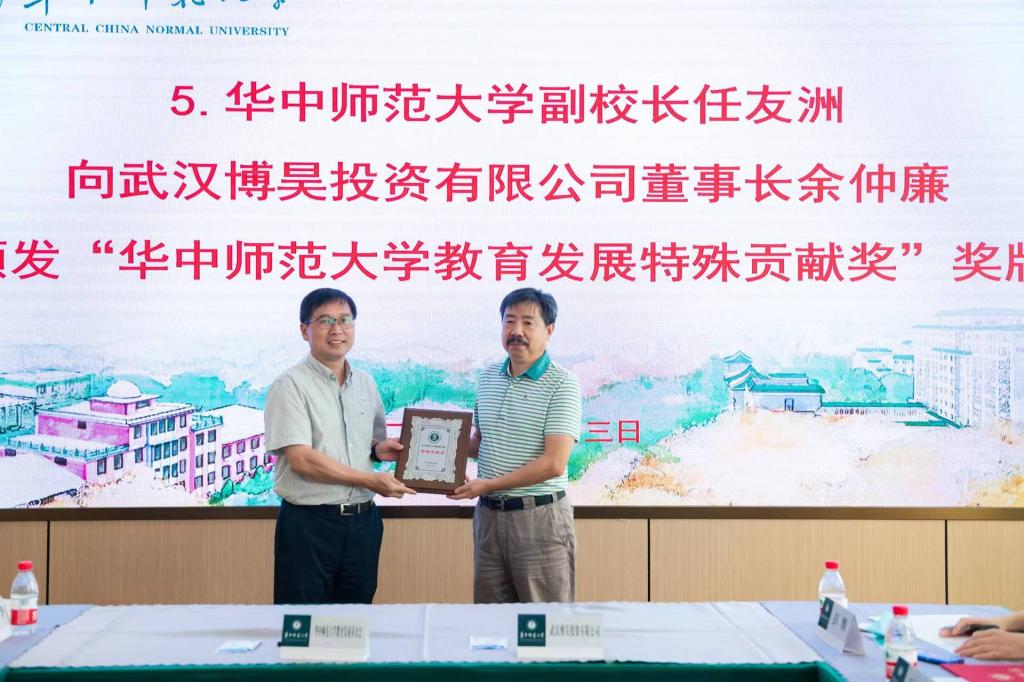 捐赠仪式上,副校长任友洲在致辞中感谢余仲廉对华师发展的支持。他表示,武汉博昊投资有限公司捐资设立校园文化建设与发展基金,践行“博善济学,铸鼎报国”的会训,是立德树人的鲜活教材,也是激励学生成长成才的动力之源。这一善举将有力助推学校教育事业发展。