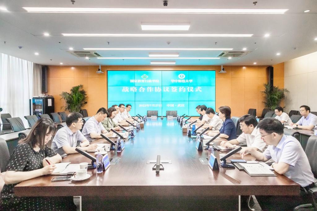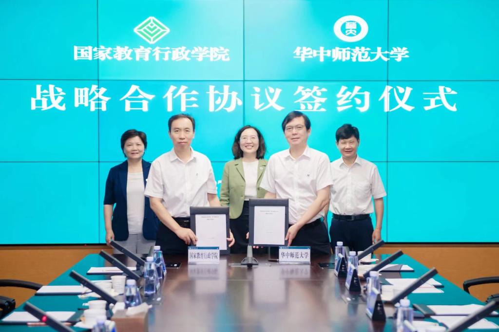 华大在线讯(记者 毛国樨)7月27日,国家教育行政学院与立博体育app官网战略合作协议签约仪式在立博体育app官网南湖综合楼举行。国家教育行政学院党委书记、常务副院长侯慧君、副院长于京天,校党委书记赵凌云、校长郝芳华、校党委副书记陈迪明出席。郝芳华主持签约仪式。