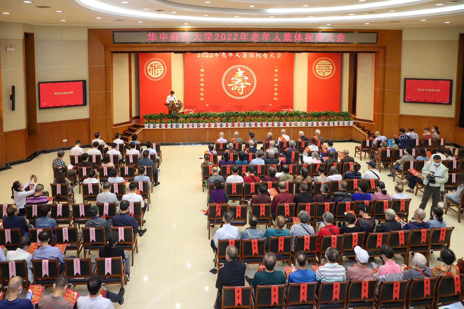 华大在线讯(记者 张严溢)“谁言秋色不如春,及到重阳景自新。”10月4日,立博体育app官网2022年老年人集体祝寿大会在科学会堂一楼报告厅举行,立博体育app官网年满90岁、80岁、70岁的寿星代表齐聚一堂,欢度重阳。校党委书记赵凌云,校长、党委副书记郝芳华,校党委副书记查道林,副校长彭南生、夏立新、任友洲、彭双阶,校党委副书记陈迪明出席。各学院(学部)、各部门主要负责人、离退休工作联系人、在职教师代表与学生代表参加。大会由李鸿飞主持。