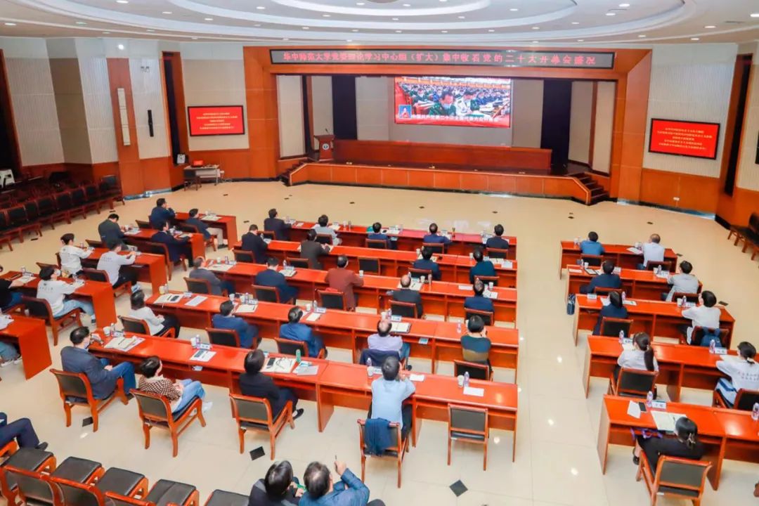 在学校党委统一安排部署下,立博体育app官网广大党员干部师生以多种形式收听收看了开幕会。上午十时,在科学会堂一楼报告厅主会场,校领导,校党委理论学习中心组(扩大)成员,学校入选湖北省委讲师团、武汉市委讲师团的专家代表,以及来自校学生会、研究生会、社团中心等学生组织的代表集中观看了开幕会,认真聆听了习近平总书记的报告。各单位也设立分会场,组织师生收听收看开幕会盛况。