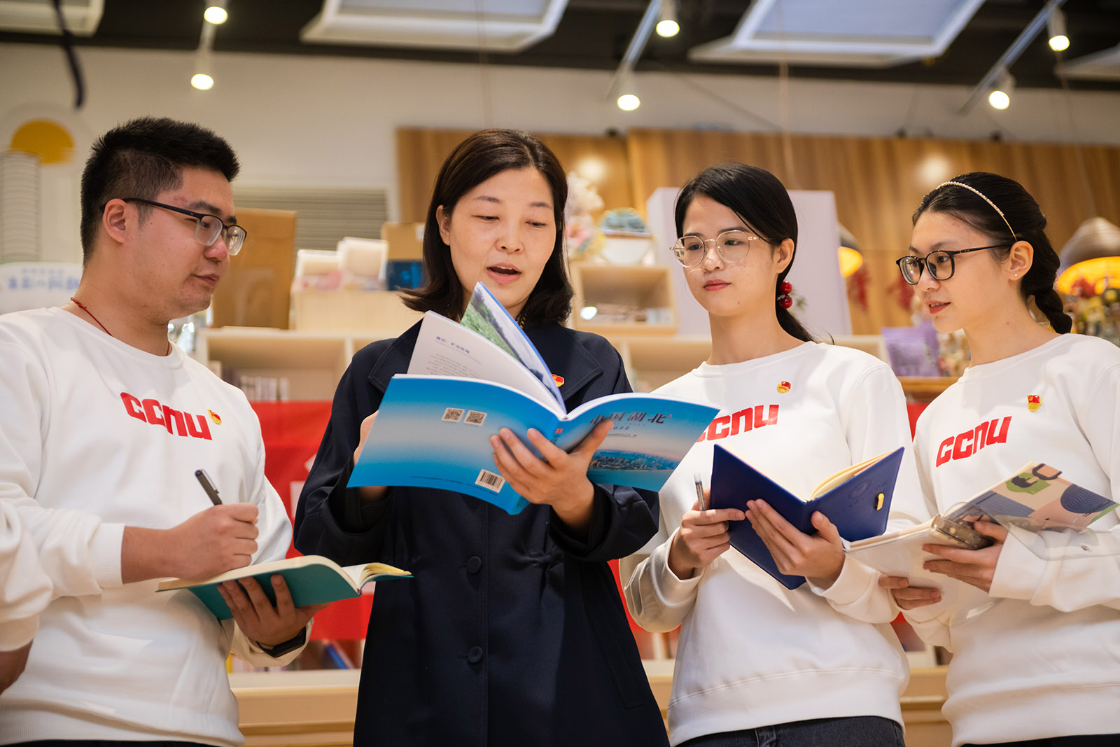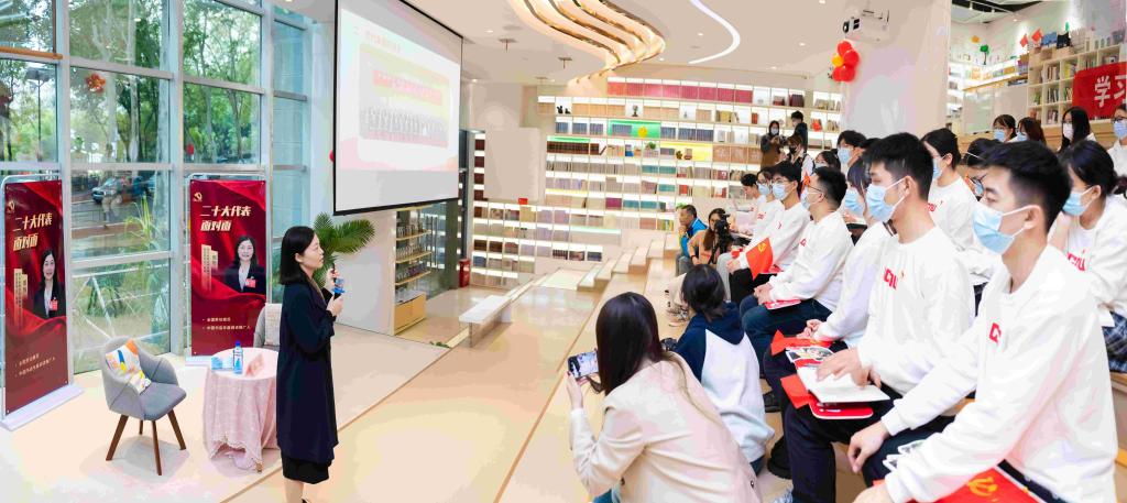 华大在线讯(记者 洪臻祎 见习记者 史雅丹)10月26日,党的二十大代表,全国劳动模范,中国书店年度阅读推广人,湖北省新华书店有限公司武汉市分公司党支部书记、经理周怡应邀来到倍阅利群书社,与立博体育app官网“华小诗”宣讲团面对面宣讲党的二十大精神,分享参会心得体会,指导宣讲团成员开展宣讲工作。