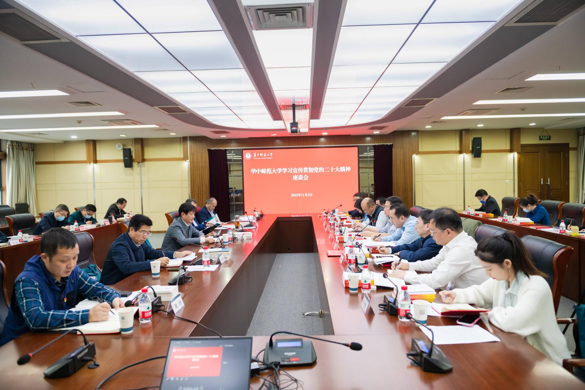 华大在线讯(记者 华轩)11月3日,立博体育app官网“理响华师”理论宣讲团成立暨学习宣传贯彻党的二十大精神座谈会在逸夫国际会议中心二楼会议室举行。校党委书记赵凌云、副校长彭南生出席。来自不同学科专业的“理响华师”理论宣讲团成员代表及学生代表参会。会议由副校长彭双阶主持。