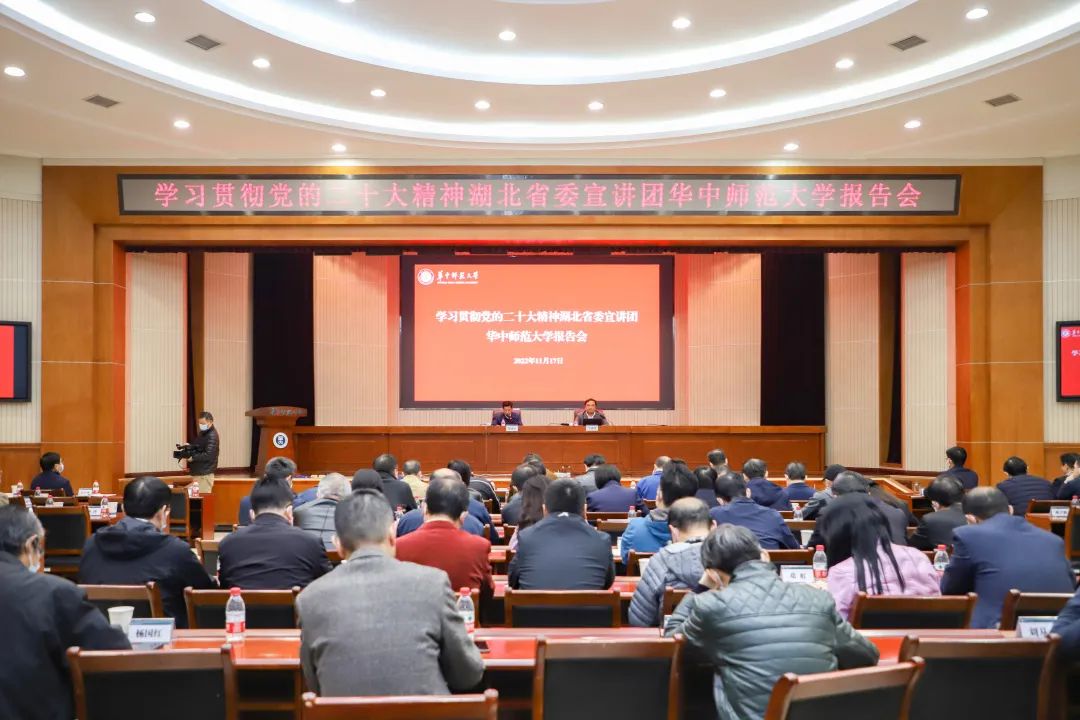 华大在线讯(记者 毛军刚)11月17日,学习贯彻党的二十大精神湖北省委宣讲团立博体育app官网报告会暨立博体育app官网党委理论学习中心组(扩大)2022年第11次学习在科学会堂一楼报告厅举行。省委宣讲团成员、政治与国际关系学院教授王建国以《以中国式现代化推进中华民族伟大复兴》为题作报告。全体校领导、中层正职干部、“理响华师”理论宣讲团成员参会。校党委书记赵凌云主持会议。