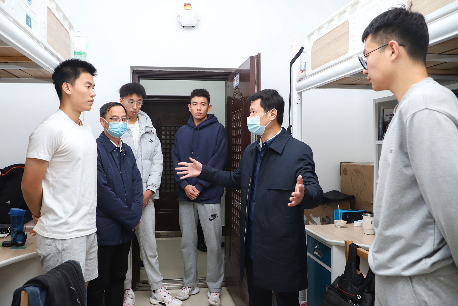 赵凌云一行还来到南湖4栋学生宿舍,与同学们进行交流。他详细询问了大家的学习生活情况,叮嘱同学们在疫情防控期间,要做好自身健康第一责任人。学校会积极帮助大家解决学习和生活上遇到的问题,全力保障师生健康安全和校园平稳有序。