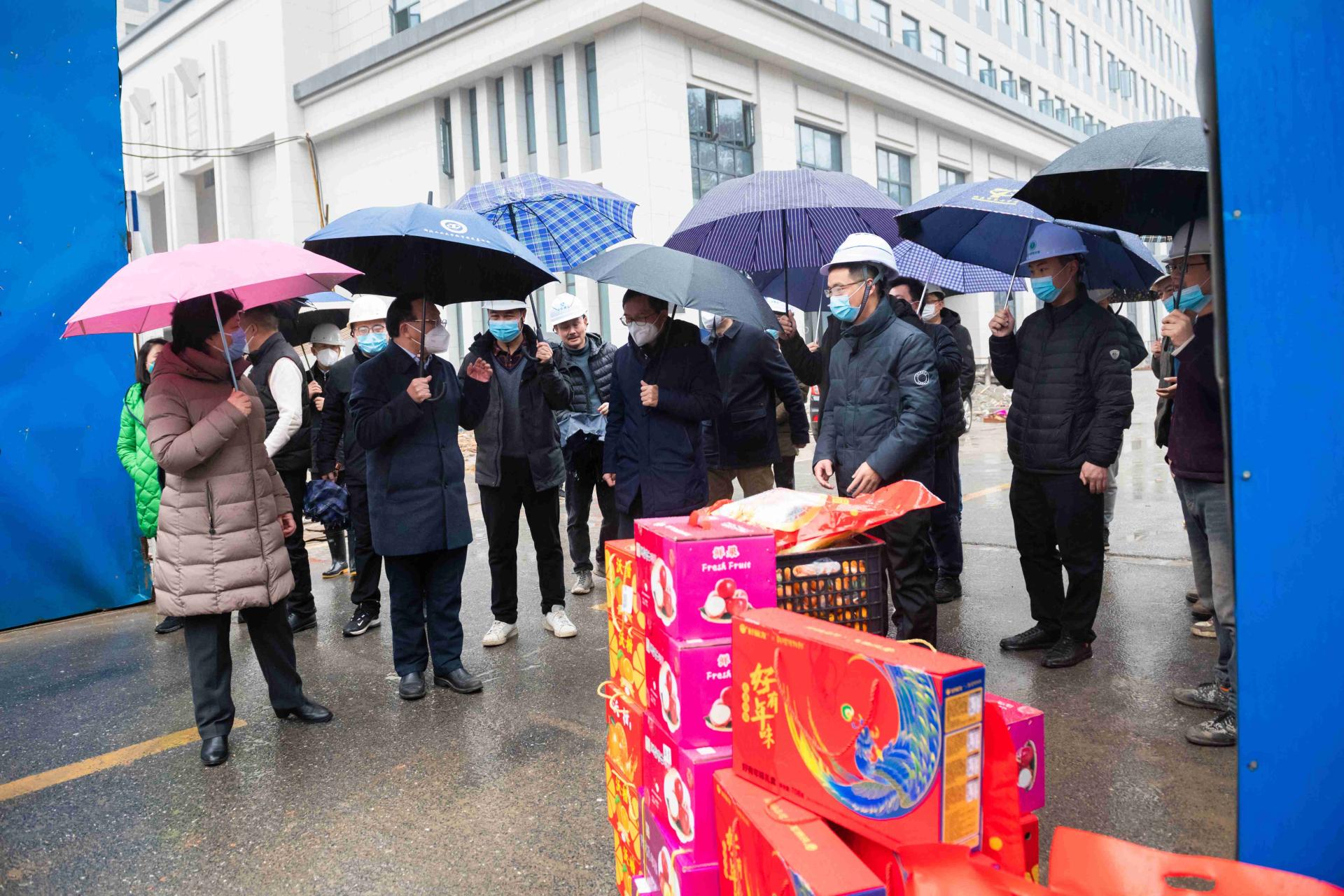 华大在线讯(记者 郝日虹)1月12日,校党委书记夏立新、校长郝芳华、副校长任友洲、校党委副书记陈迪明带领相关单位负责人,先后到文科楼二期工地、桂香园食堂、西区学生宿舍4栋、研究生考试阅卷工作现场等地,走访看望寒假期间坚守岗位的教职员工及留校学生,为他们送去新春的问候和节日的祝福。