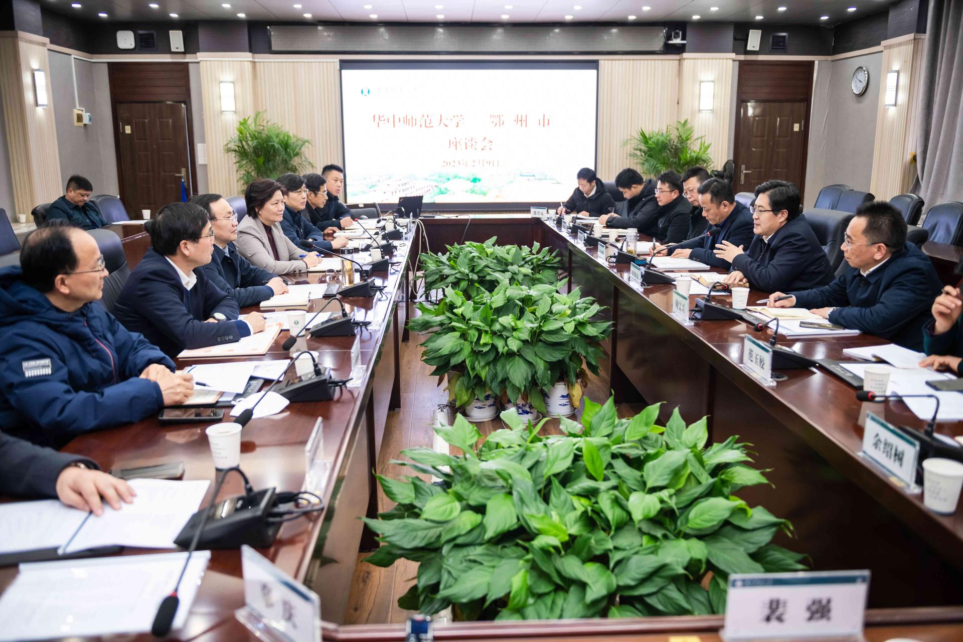 会上,任友洲介绍了新校区建设有关情况,鄂州市教育局有关负责同志介绍了鄂州市基础教育发展等情况。双方相关单位负责人围绕深化校地合作展开了探讨和交流。