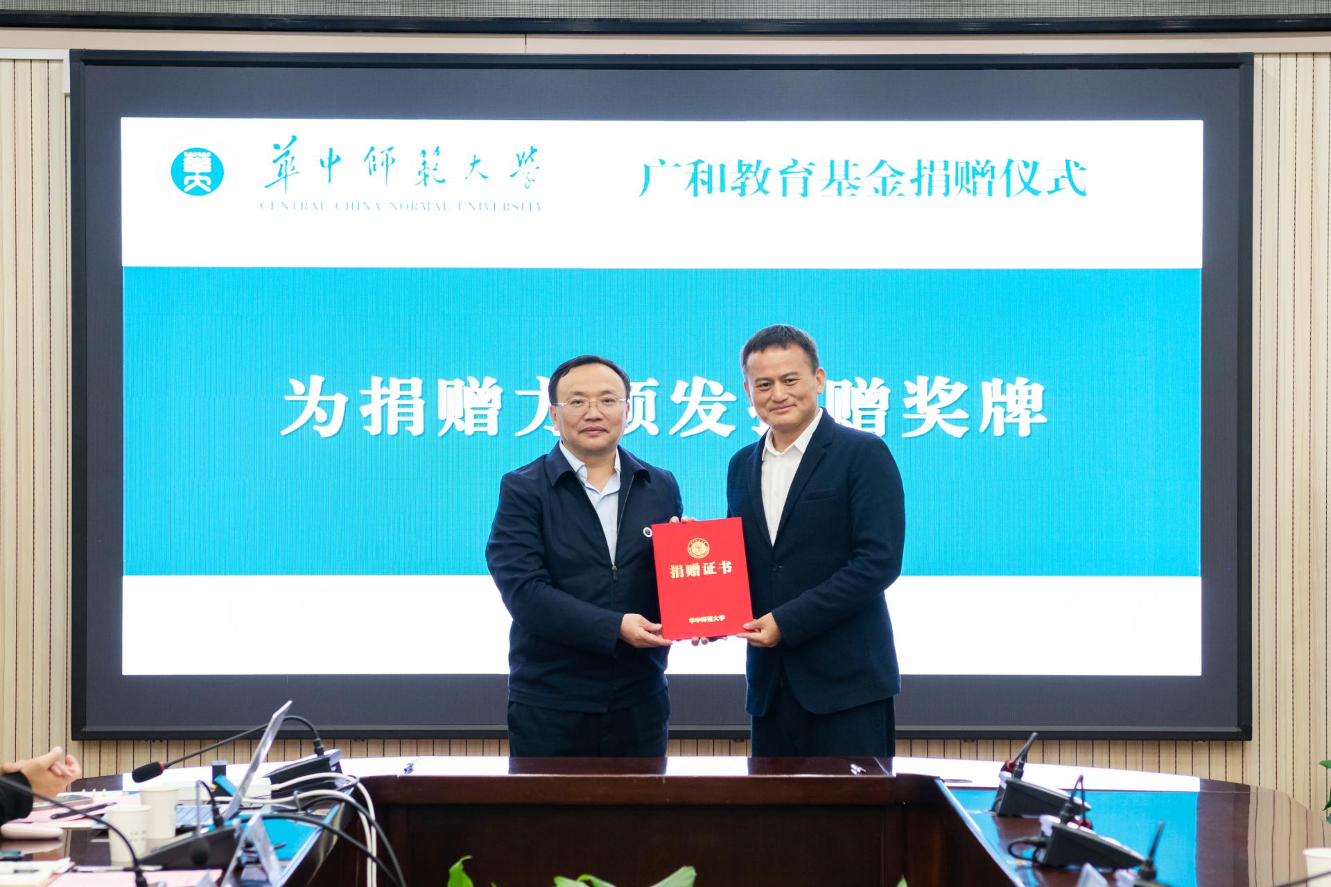 华大在线讯(通讯员 吴国栋 徐静宜)4月3日,广和教育基金捐赠仪式在行政楼一楼会议室举行。校党委书记夏立新、广东广和律师事务所首席合伙人童新出席,学校教育发展基金会、法学院和广和律师事务所相关负责同志以及师生代表参加。
