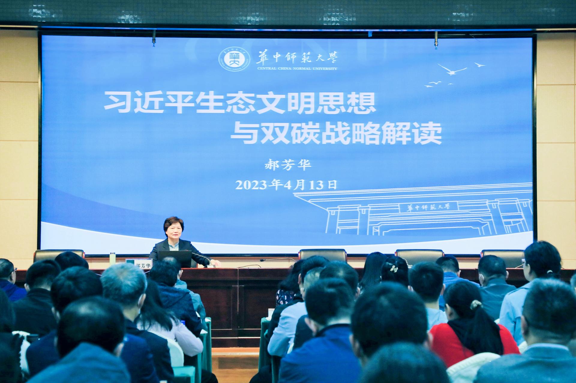 郝芳华在报告中结合自身学习、工作经历,以深刻的阐述、鲜活的案例深入解读了习近平生态文明思想的发展历程、主要内涵、重大意义和鲜明特色,详细介绍了双碳目标的战略意义、现实挑战、实践路径、热点趋势。在互动交流环节,郝芳华就学员提出的相关支持政策、双碳立博体育app官网等问题作了精彩的解答,并热情邀请大家在今年金秋时节再回桂子山共庆华师120周年华诞。
