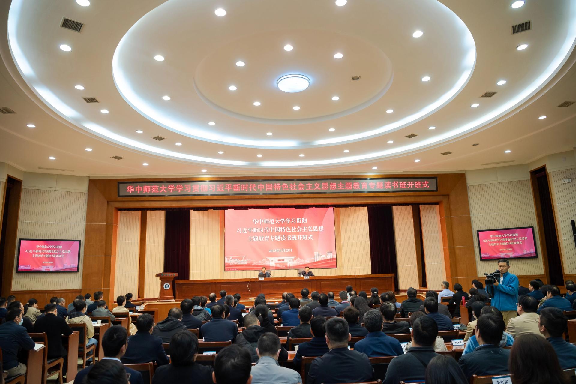 中国工程院院士、华中科技大学原校长、国家数字建造技术创新中心首席科学家丁烈云作题为《服务国家创新驱动发展战略建设高水平大学》的辅导报告。校党委书记、主题教育领导小组组长夏立新主持开班式并领学“深刻领悟‘两个确立’的决定性意义”学习专题。