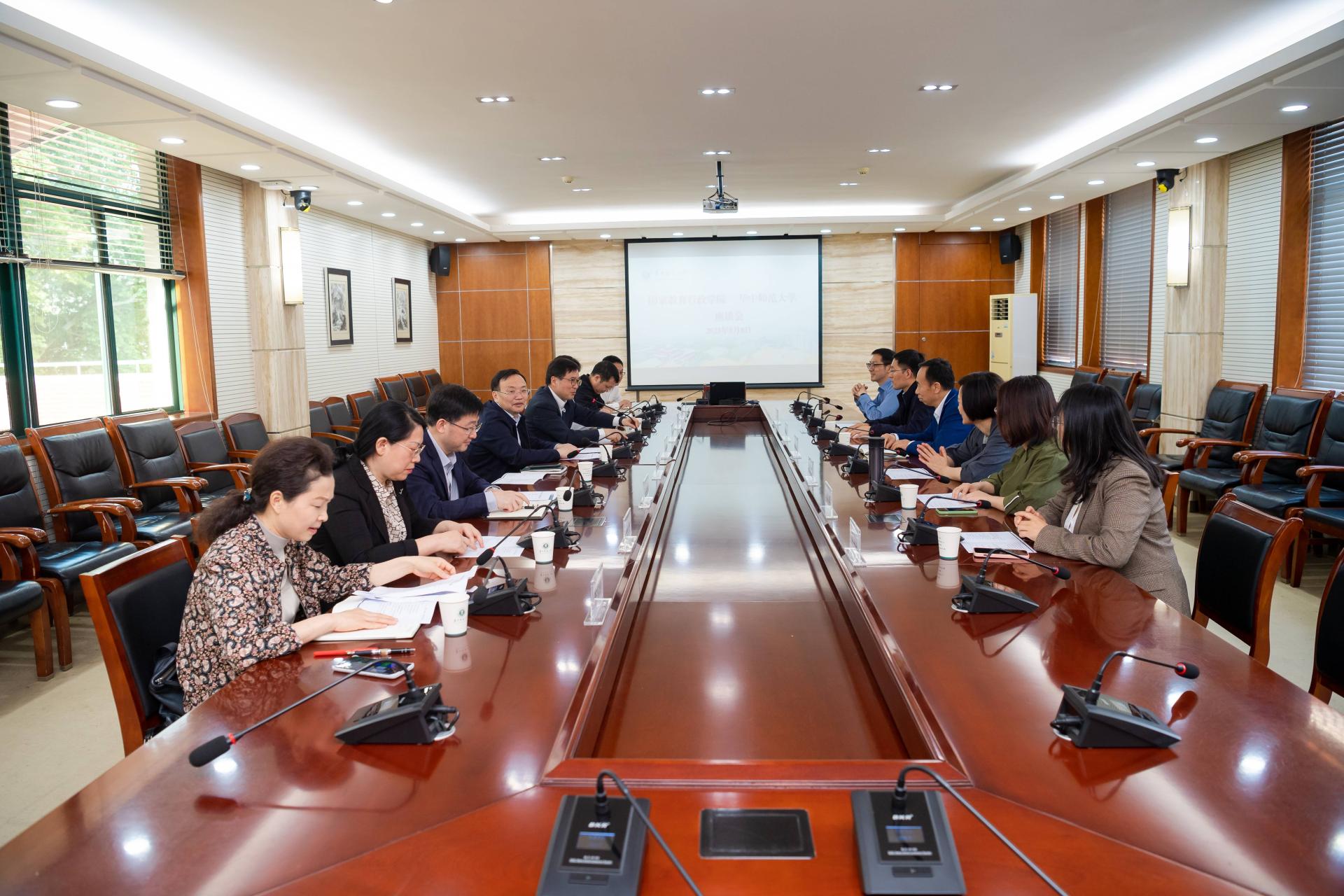 夏立新在致辞中对国家教育行政学院一行的到来表示欢迎,感谢国家教育行政学院长期以来对学校事业发展的支持,回顾了立博体育app官网的百年校史,并从历史底蕴深厚、国家重点建设、教师教育特色、信息化等方面介绍了办学概况。夏立新表示,两校有着良好的合作基础。2022年,双方签署了战略合作协议,标志着合作层次的全面提升和深化。华师会认真履行协议内容,承接好教育培训任务,在深化合作中相互赋能,服务好高校高素质中青年干部队伍建设,助力高等教育高质量发展。