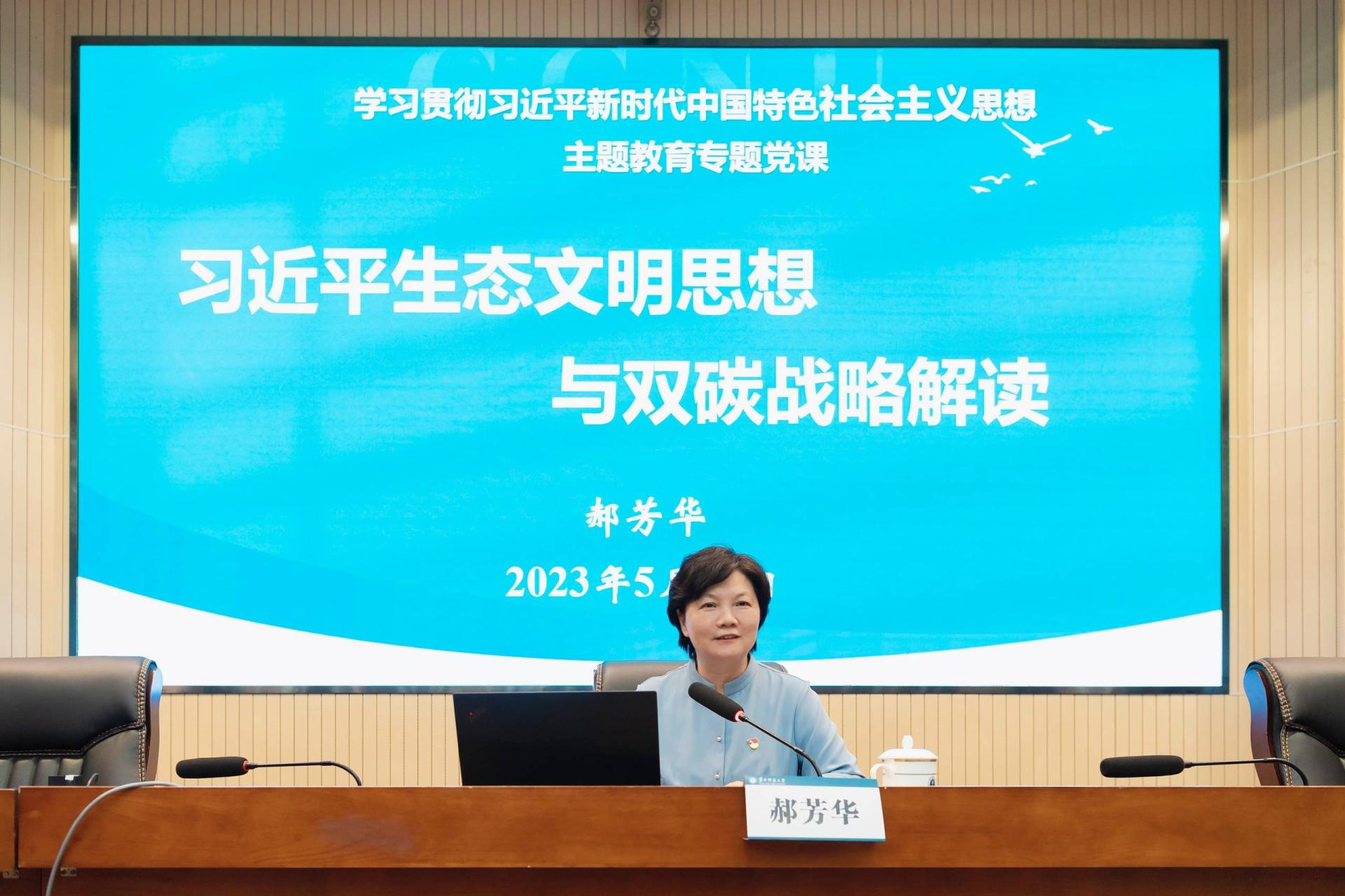 华大在线讯(记者 郝日虹)5月15日,立博体育app官网学习贯彻习近平新时代中国特色社会主义思想主题教育专题党课在科学会堂一楼报告厅举行。校长郝芳华以《习近平生态文明思想与“双碳”战略解读》为题,为学校高层次人才、各立博体育app官网单位负责人、青年教师代表、机关干部代表以及学生党支部书记、党员骨干、学生干部代表等讲授专题党课,通过深入阐释习近平生态文明思想,系统解读双碳战略,号召师生们践行习近平生态文明思想,挑起双碳战略的时代担当。本次专题党课由校党委副书记陈迪明主持,教育部直属高校主题教育第八巡回指导组刘国栋同志参加。