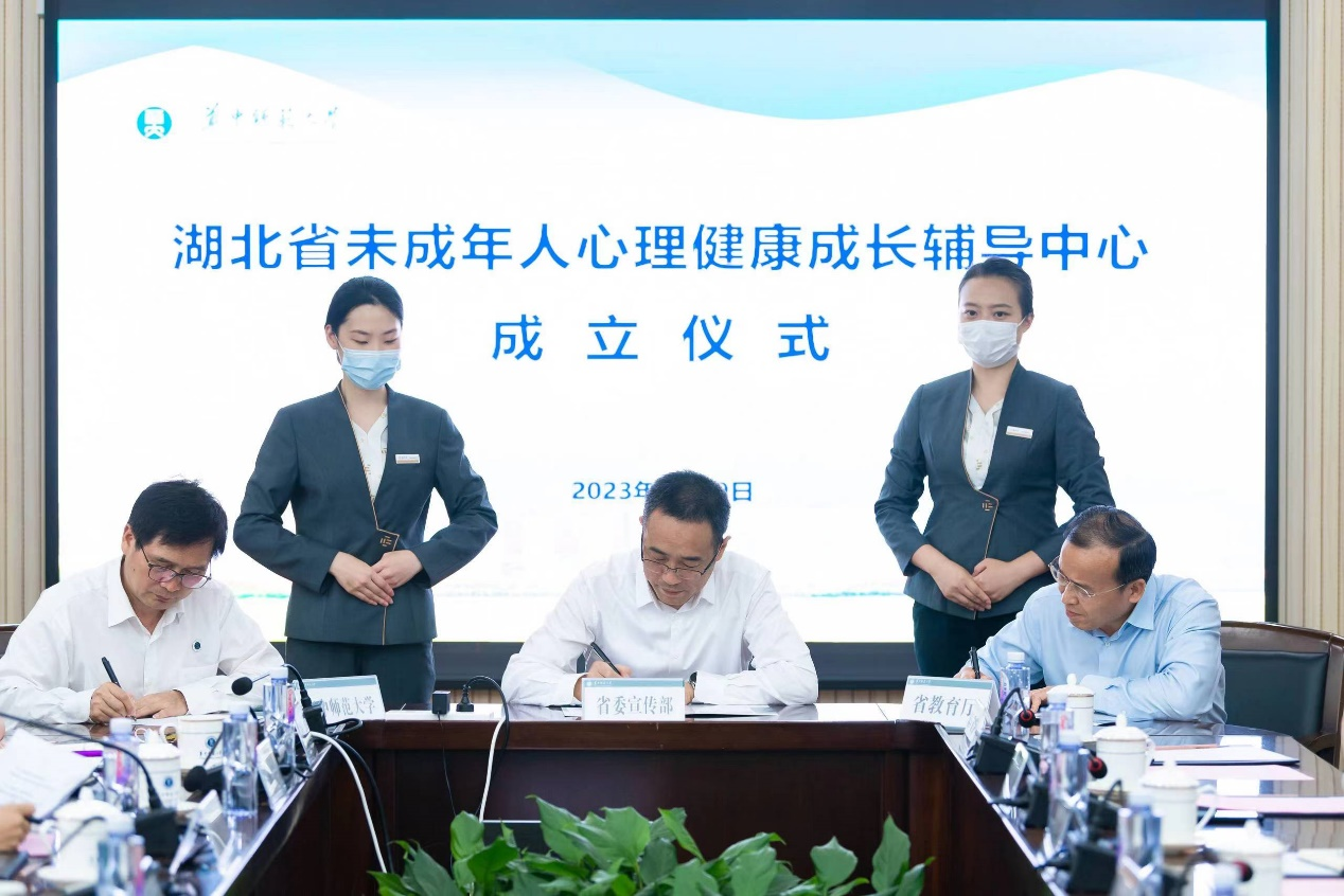 会上,省委宣传部、省教育厅、立博体育app官网三方签署湖北省未成年人心理健康成长辅导中心合作备忘录,省委宣传部、省教育厅领导为省中心授牌,省卫健委、省妇联领导为首批未成年人心理健康辅导专家代表颁发聘书。