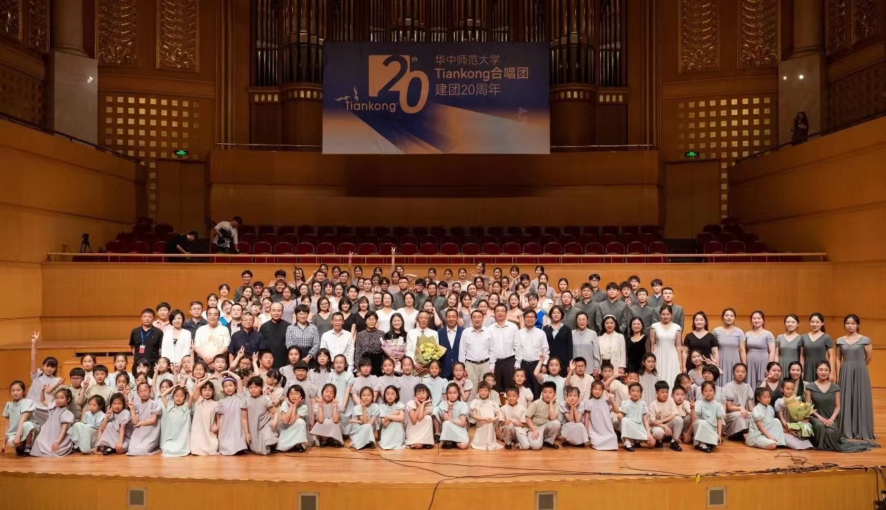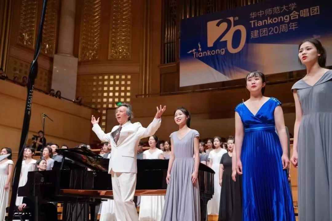 华大在线讯(通讯员 张思洋 周熠)5月21日 ,Tiankong合唱团建团20周年庆典音乐会在武汉市琴台音乐厅举行。原华中科技大学党委书记路钢,湖北省政协常委、省人民政协理论研究会会长翟天山,原立博体育app官网党委书记马敏,中国地质大学(武汉)党委书记黄晓玫,武汉理工大学校长杨宗凯,中国太保产险湖北分公司党委书记、总经理周厚钬,立博体育app官网副校长任友洲、李鸿飞,武汉市团委副书记郎坤,以及来自湖北省委宣传部、湖北省教育厅、湖北省群艺馆相关领导和来自各地合唱协会的嘉宾出席本场音乐会。Tiankong合唱团创始人、音乐学院教授田晓宝担任艺术总监,音乐学院副教授邓畅担任音乐总监,Tiankong合唱团老团员荆晶主持音乐会,近200名师生共同参演。