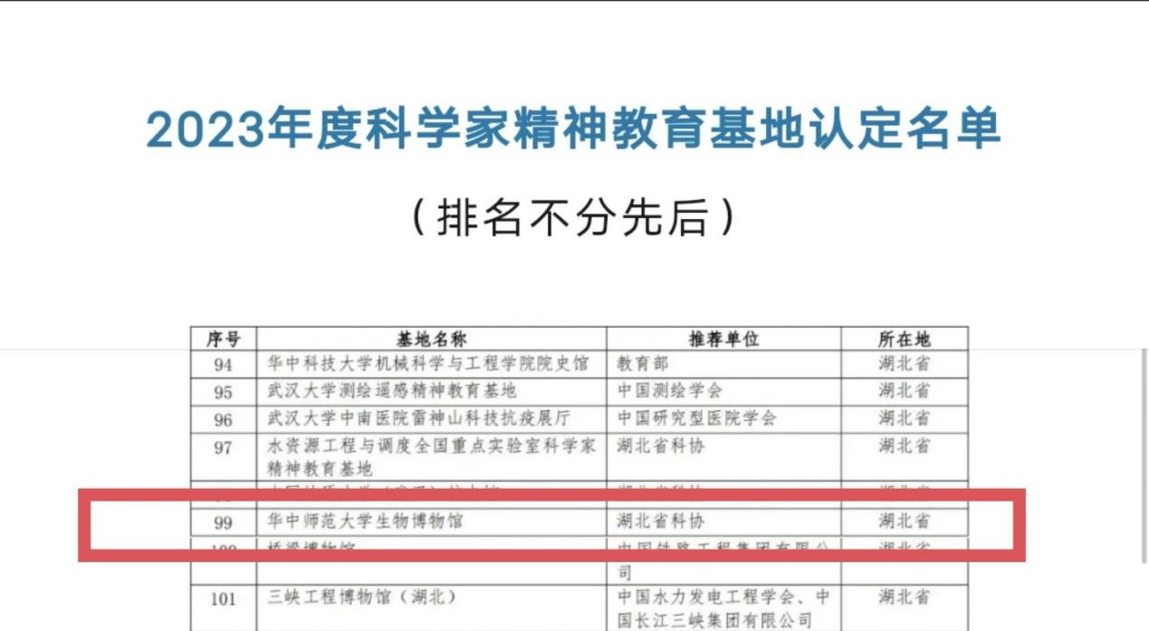 华大在线讯(通讯员 邓淑文 黄悦)5月30日,中国科协、教育部、科技部、国务院国资委、中国科学院、中国工程院、国防科工局联合发布2023年度科学家精神教育基地认定名单。经过初评、终评和公示等程序,立博体育app官网生物博物馆成功入选2023年度科学家精神教育基地。