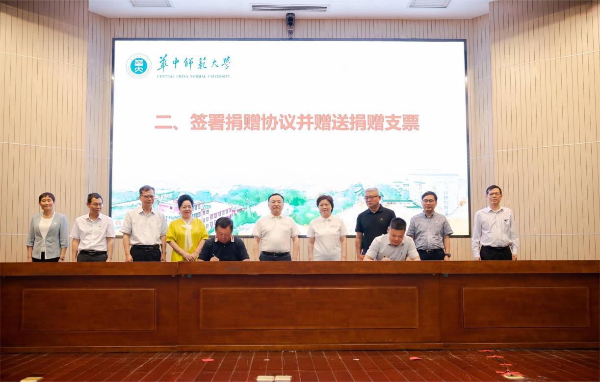 郝芳华代表学校对远道而来的嘉宾表示欢迎,对翁先定校友及新产业投资股份有限公司慷慨解囊、鼎力支持母校发展的善举致以崇高的敬意和诚挚的感谢。她表示,40年来,翁先定校友始终心系华师、情系桂子山,如今为母校捐资助学,为学校事业高质量发展添砖加瓦,体现出他强烈的社会责任感和对教育事业的无限关心。学校将倍加珍惜此次捐赠,既坚持管好用好捐赠资金,又发挥示范带动作用,争取吸引更多的校友、社会热心人士和爱心企业,积极参与支持学校的发展建设。
