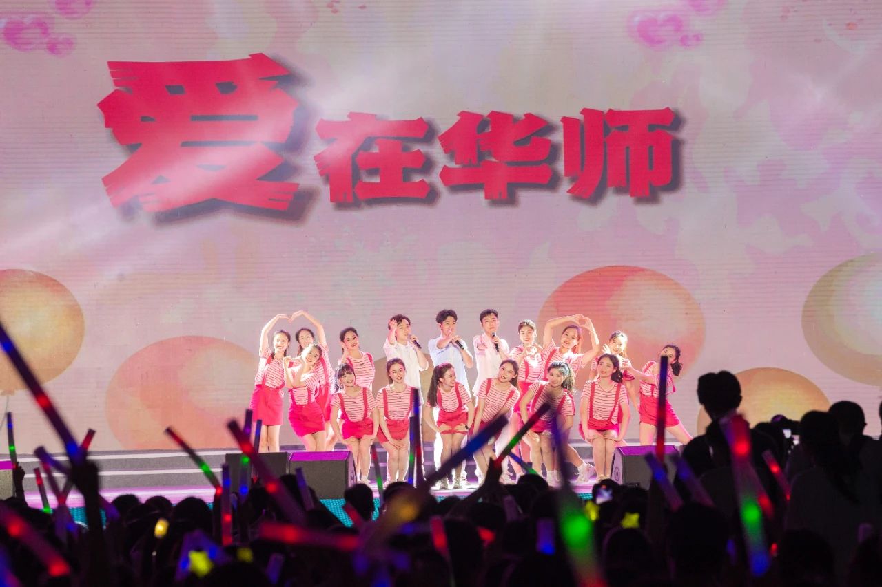 “写一首品尝橘子味晚霞的诗,写一首佑铭灯光和人影闪烁的诗”,原创歌曲《写一首华师》带领观众徜徉于华师的各处景色,感受藏在时光深处里属于华师的温暖诗篇。歌曲表演《爱》同样融合了华师元素,一句句歌词都在诉说着对师长、对挚友、对华师的浓浓爱意。轻快动听的旋律让台下观众自觉地随着音乐节奏挥舞荧光棒,汇成翻涌的亮色海洋。
