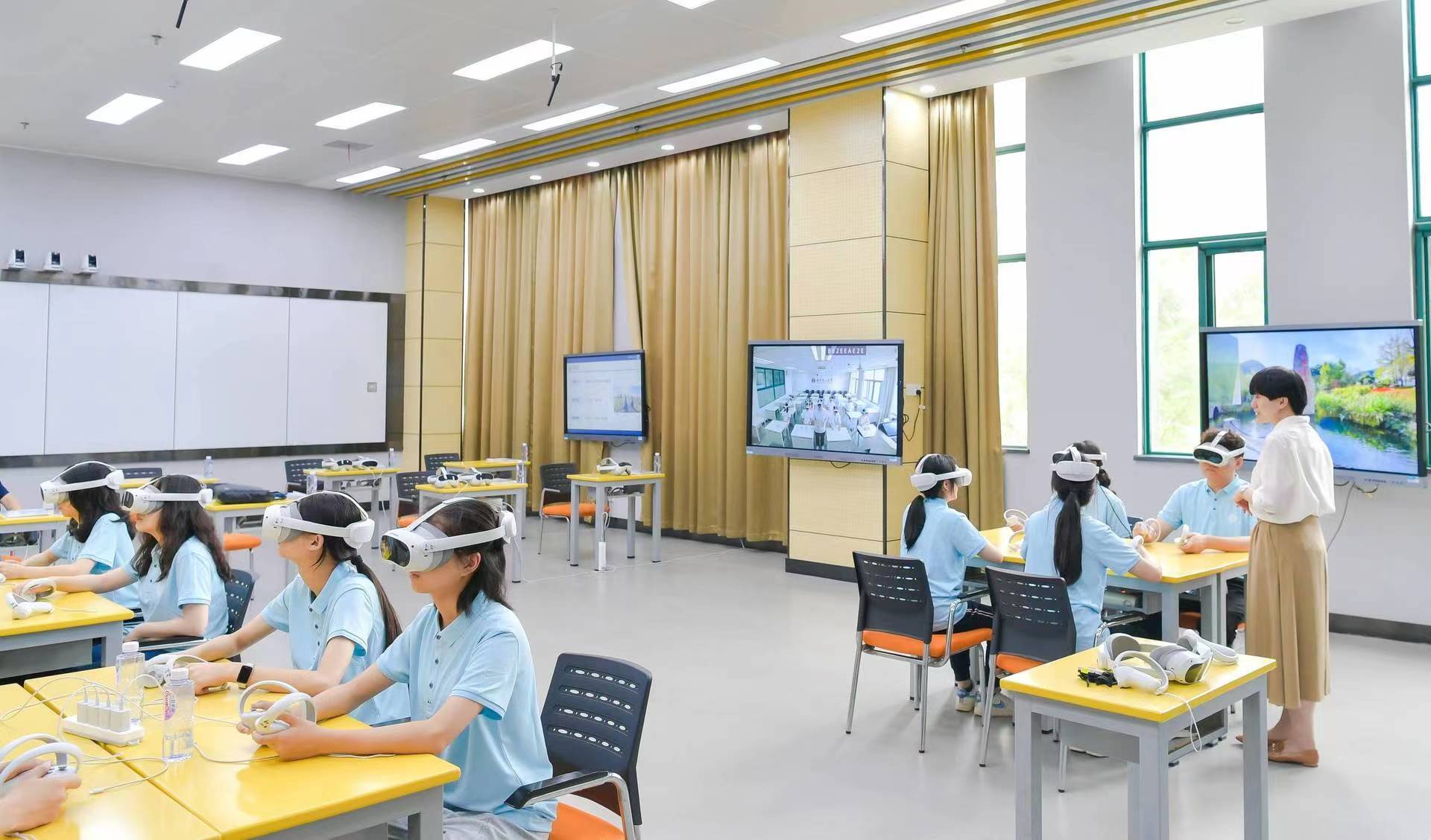 华大在线讯(记者 华轩)走进南湖综合楼N214智慧教室,马克思主义学院教师丁茜正在给学生讲解“人与自然是生命共同体”这个主题。同学们围坐在课桌边,佩戴着VR头盔,手握操作手柄,跟随着丁茜的讲解,库布齐的漫天黄沙、安吉县的秀丽风光、“千湖之城”武汉等虚拟影像渐次出现,让大家在更加直观、立体化的视听体验中,加深对“绿水青山就是金山银山”的理解。这堂以“VR+思政”教学模式打造的沉浸互动、具身体验的“马克思主义基本原理”课堂,是立博体育app官网教育数字化的一个缩影。