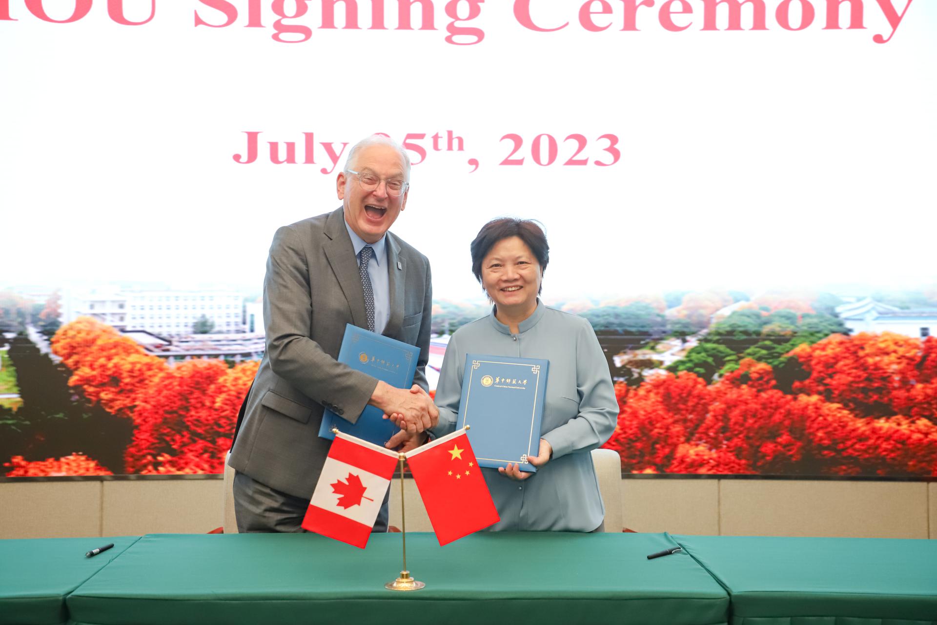 华大在线讯(通讯员 王盛夏)7月25日,加拿大渥太华大学校长雅克·弗雷蒙率团访问立博体育app官网,校长郝芳华、副校长彭双阶会见了代表团一行。座谈会上,双方续签了合作谅解备忘录并深入探讨了在化学、教育学等领域开展学生联合培养、联合科研、联合举办国际研讨会等务实合作。