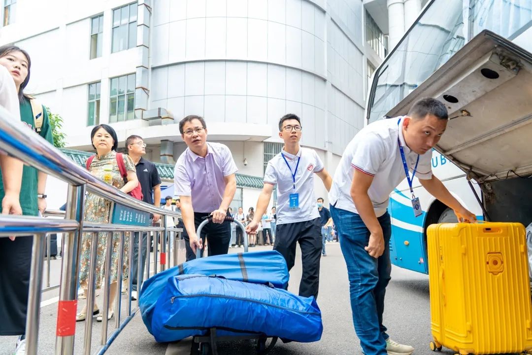 “暖心服务”体现“爱在华师”。身穿红色马甲志愿者的身影在武汉市 “三站一场”以及桂子山上随处可见。学校、各培养单位均安排学生志愿者,面向新生提供“一对一”志愿服务,到校后在引导下依次完成报到流程、物资领取、寝室入住等全部流程。报到当天,校园内设立了7个志愿服务站点,为新生提供道路引导等帮助。同时,学校在“三站一场”安排迎新专车,负责接送新生及家长到校,桂子山和南湖校区迎新点也配备了转运车辆,方便学生搬运行李。