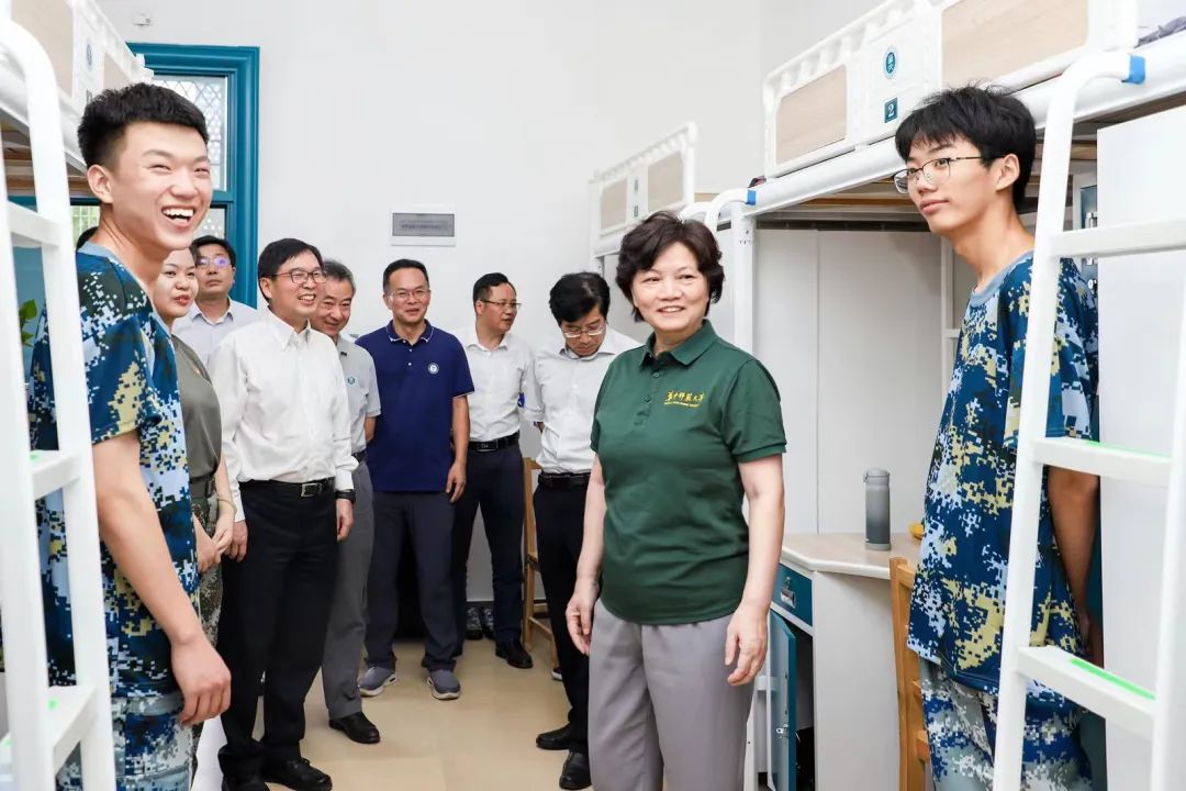 开学当日,校长郝芳华、副校长任友洲、副校长彭双阶走访慰问了新生。“今天报到顺利吗?”“来到华师,对学校环境满意吗?”“同住一个寝室,大家要相互关心、彼此照顾”“希望你们好好学习,珍惜大学时光”……校领导一行先后在东区学生宿舍6栋、西区学生宿舍4栋和南湖学生宿舍1栋走访看望了数学与统计学学院、化学学院、文学院、经济与工商管理学院、体育学院2023级本科生,了解同学们生活情况,勉励他们在华师有更好的成长与发展。