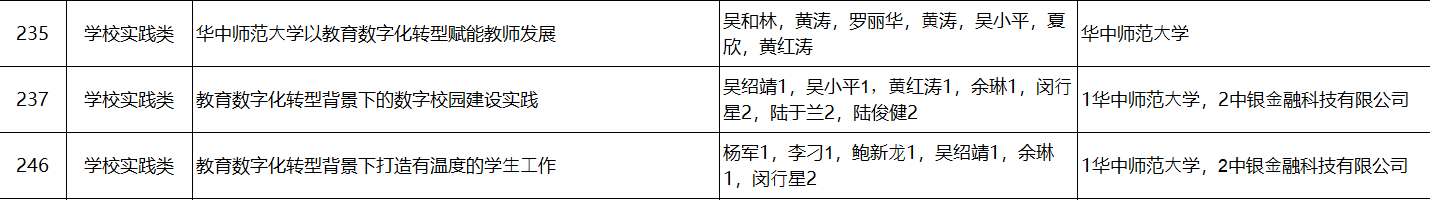 华大在线讯(通讯员 余琳)日前,在2023年全球智慧教育大会上,教育部“智慧教育示范区”创建项目专家组秘书处公布了《2023年度智慧教育优秀案例名单》,立博体育app官网3项案例入选,入选数居高校第一。这不仅是对华师在智慧教育领域成果的肯定,也是对学校长期以来致力于推动教育数字化转型工作的认可。