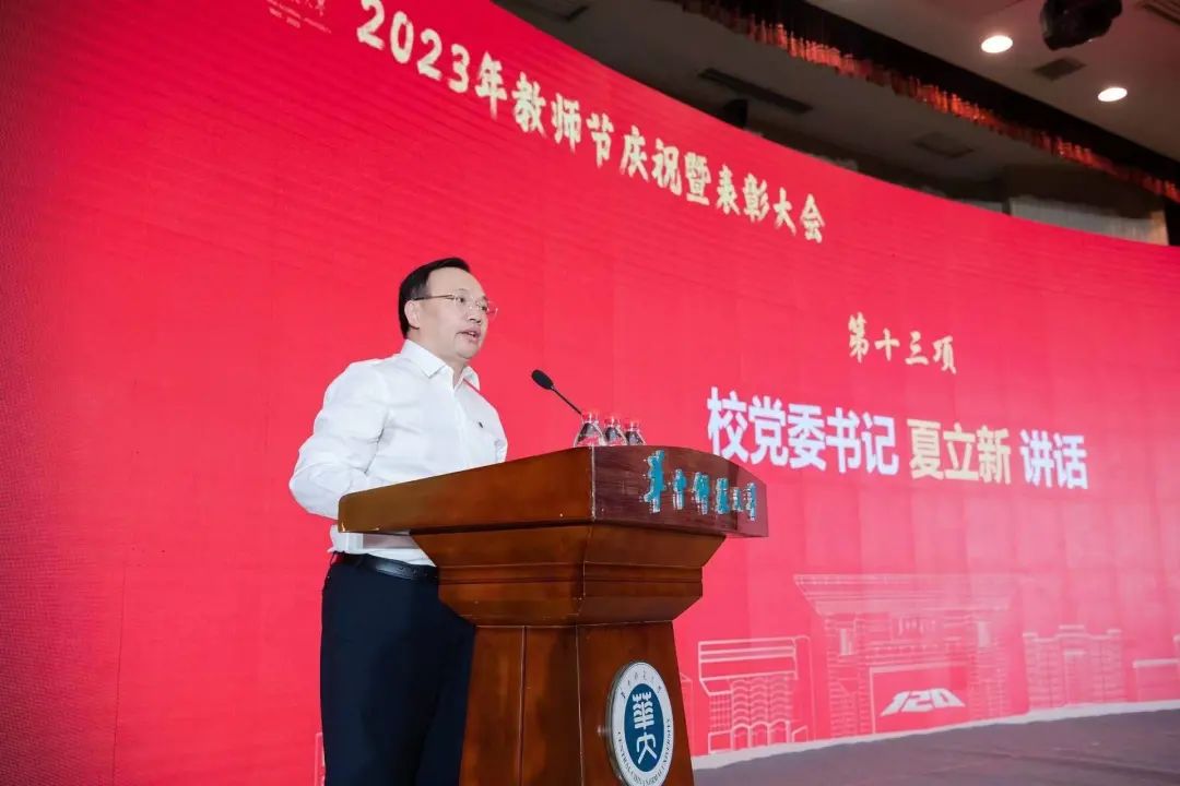 校党委书记夏立新在总结讲话中表示,教师是立教之本,兴教之源。作为教师教育的国家队,立博体育app官网在120年的办学历程中,为教育强国建设交出了一张气势恢宏、浓墨重彩的“华师答卷”。立足百廿华师事业发展崭新起点,夏立新希望,学校进一步深挖百廿学府的红色基因和教育情怀,让教育家精神成为新时代教师队伍建设的不竭动力;全体教职员工更好地赓续百年初心、担当育人使命。一要坚定理想信念,做忠诚教育的耕耘者,坚持不懈用习近平新时代中国特色社会主义思想铸魂育人,把党的教育方针贯彻到立博体育app官网、科学研究、社会服务全过程、各方面,真正把心放在学生身上,把论文写在祖国大地上,造就强国英才,争做大国良师。二要坚守道德情操,做明道信道的传道者,以德立身、以德立学、以德施教,勤修仁爱之心,弘扬高尚师德,以精神之美、行为之善、思想之真,教育引导广大学生胸怀强国之志,砥砺报国之行。三要坚持求是创新,做孜孜以求的探索者,秉持主动学习、终身学习的理念,养成求真务实的治学态度,恪守严谨笃学的良好学风,持之以恒地提升教书育人本领,练就高超“师能”。学校党委将一如既往地厚植尊师文化、保障教师权益、服务教师成长,让广大教师安心从教、热心从教、舒心从教、静心从教,让每一位教师都能在桂子山这片热土上成就个人梦想、绽放精彩人生!