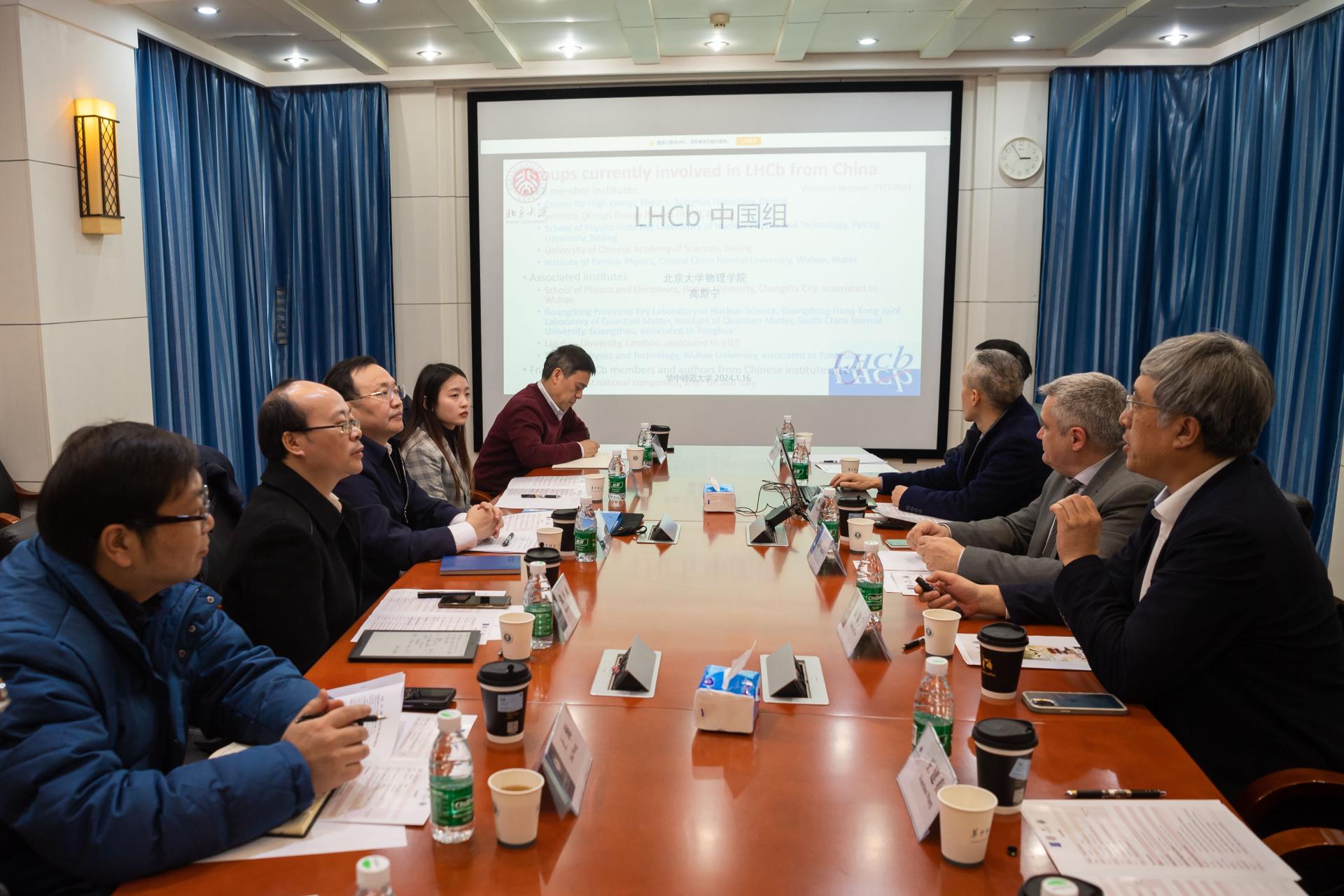 华大在线讯(通讯员 尹航)1月16日,欧洲核子研究中心—北京大学—中国科学院高能物理研究所—立博体育app官网粒子物理合作会谈在校举行。欧洲核子研究中心(CERN)LHCb国际实验组发言人文森佐.瓦尼奥尼博士、北京大学物理学院院长高原宁院士、校党委书记夏立新、中国科学院高能物理研究所实验中心副主任王建春研究员出席。科技处、国际合作与交流处、物理科学与技术学院负责人和粒子物理研究所相关人员参加会谈。