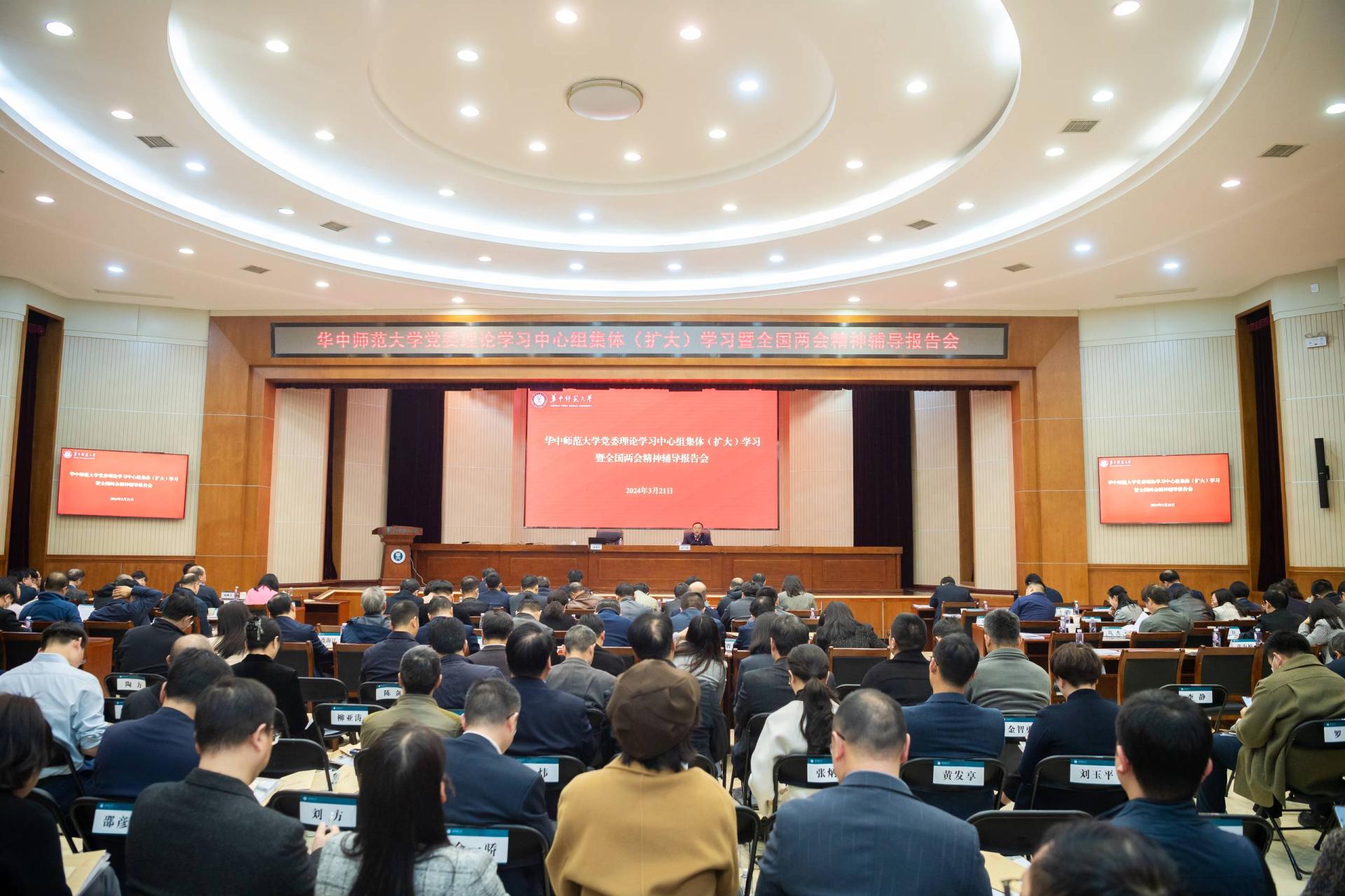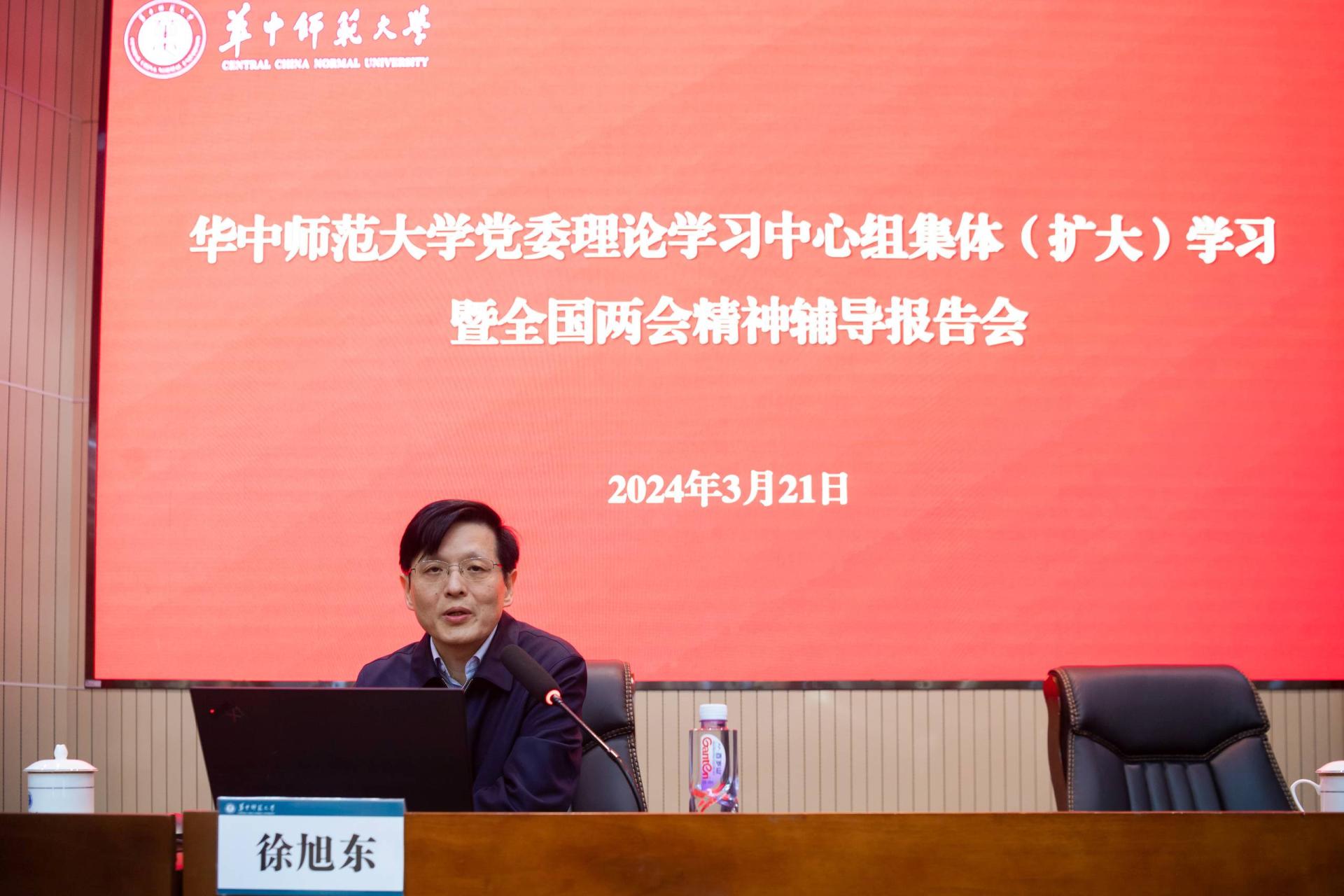 华大在线讯(记者 华轩)3月21日,立博体育app官网在科学会堂一楼报告厅举行校党委理论学习中心组集体(扩大)学习暨学习贯彻全国两会精神辅导报告会,深入学习贯彻2024年全国两会精神。校党委常委,全体中层干部,各级人大代表和政协委员、各民主党派基层组织和侨联负责人,各涉老组织负责人和师生代表参会。会议由校党委书记夏立新主持。