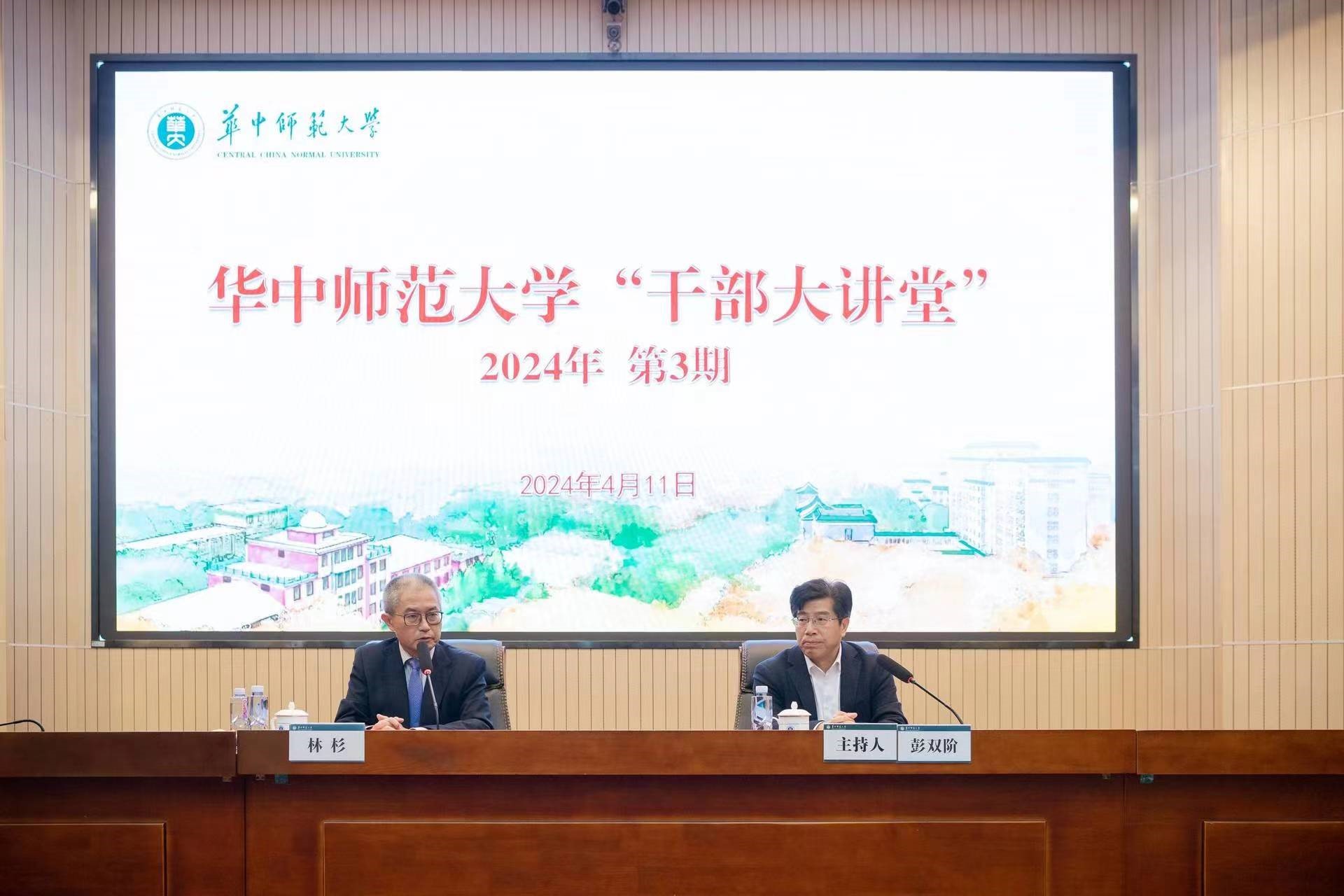 华大在线讯(通讯员 张琳)4月11日,立博体育app官网2024年第3期“干部大讲堂”在科学会堂一楼报告厅举行。新加坡南洋理工大学常务副校长兼教务长林杉(LING San)以《新加坡南洋理工大学:立足新加坡 卓越放眼全球》为题作专题报告。校长彭双阶,校党委副书记陈迪明,校党委副书记、纪委书记刘继文出席。立博体育app官网中层正职干部及教学科研单位副职干部集中学习。校长彭双阶主持。