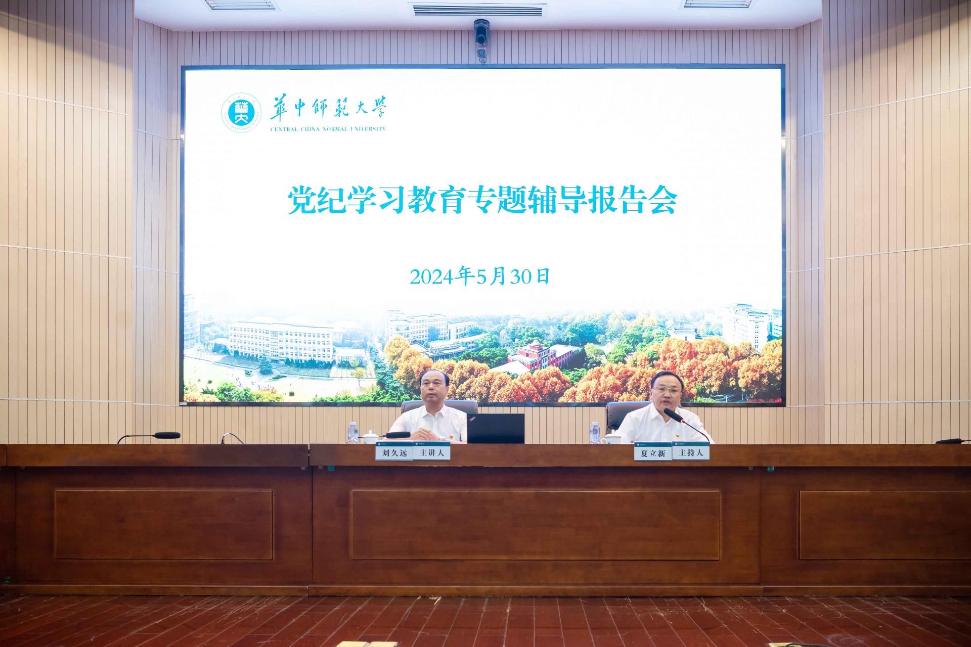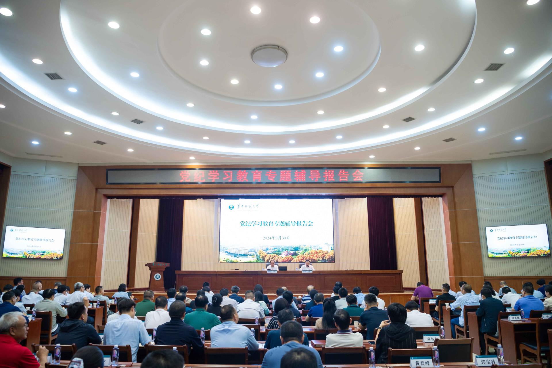华大在线讯(通讯员 王涛)为深入学习贯彻《中国共产党纪律处分条例》(以下简称《条例》),进一步加强立博体育app官网党员干部的党性教育和纪律建设,推动党纪学习教育走深走实,5月30日,学校党委举行党纪学习教育专题辅导报告会,师生党员“同上一堂党纪课”。湖北省监察委员会委员刘久远应邀作专题辅导报告。校党委书记夏立新主持报告会。