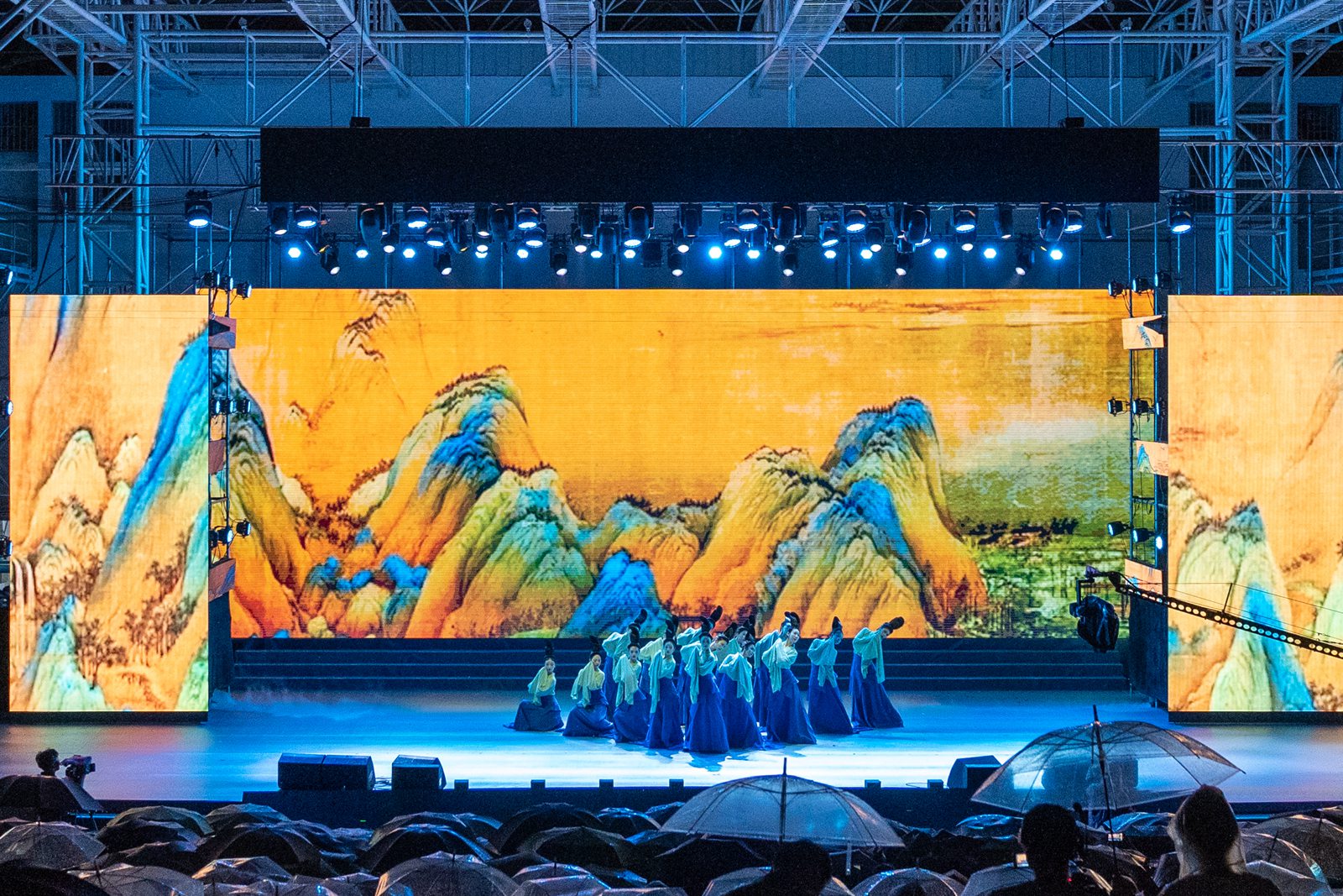 “同心携手,实现梦想”,歌舞节目《青春畅想》以跃动的旋律和轻快的舞步,拨动观众的心弦。回首时光,《起风了》追忆起华师学子在桂子山上意气风发的青春。献礼新中国成立75周年,《青春之歌》以不同年代的毕业歌致敬一代代志在高远、奋力追梦的华大青年。正在备战巴黎奥运会的体育学院2021级本科生陈佳鹏通过视频为同学们献上了真挚祝福,祝愿全体毕业生都能在青春的赛道上跑出华师风采。体育学院学生则携手外国留学生代表,将灵动自由的艺术体操与充满力量的舞龙表演相融合,演绎出了《最炫华师风》,彰显他们朝气蓬勃的精神面貌。虽然天上淅淅沥沥下起了小雨,但浇不灭同学们的热情,精彩的演出依旧赢得了观众的阵阵喝彩。