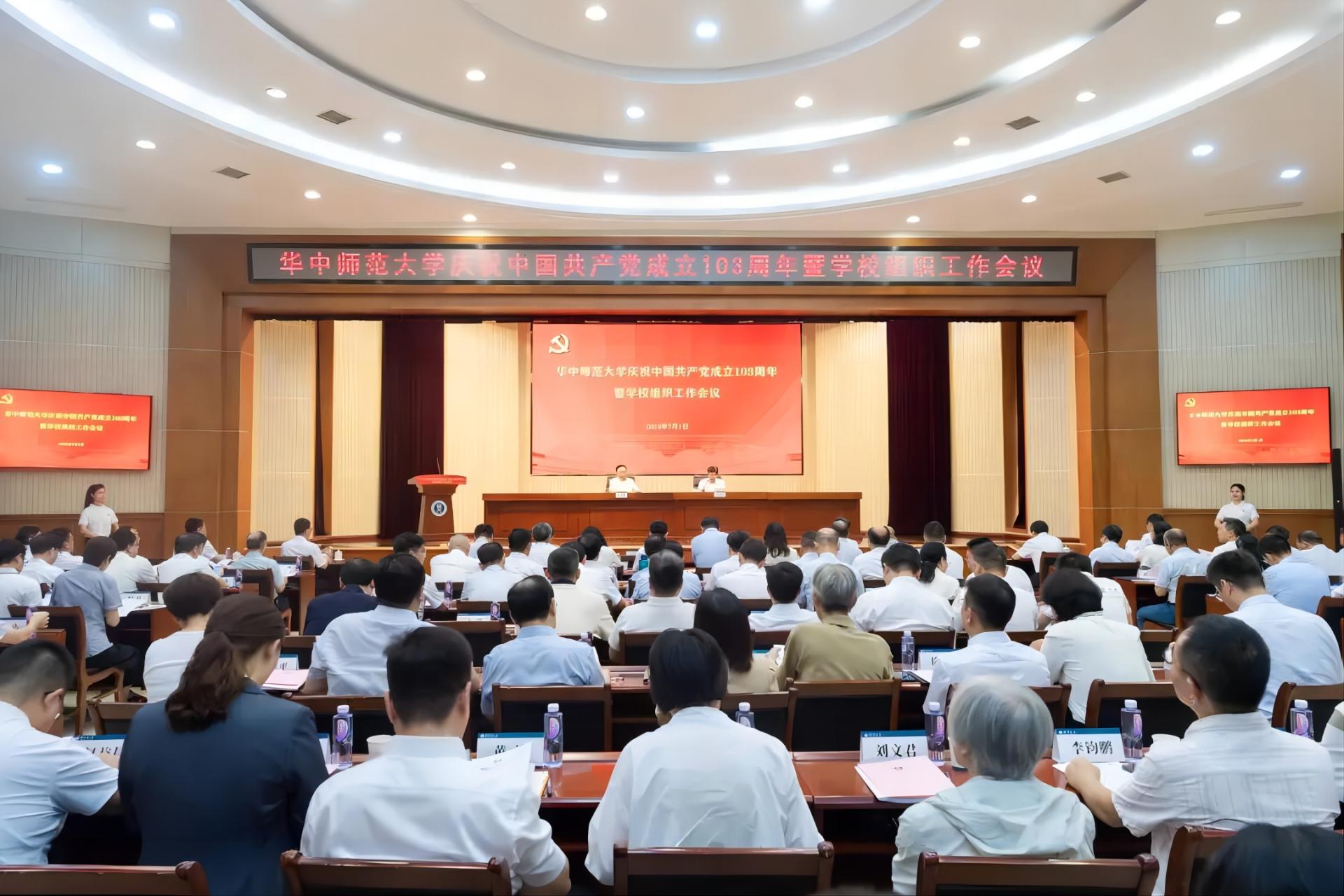 华大在线讯(通讯员 李杰 宋琴婷)7月1日,立博体育app官网庆祝中国共产党成立103周年暨学校组织工作会议在科学会堂一楼报告厅举行。教育部直属高校党建工作联络员、中南财经政法大学原党委副书记齐文远出席,学校全体在校校领导、全体中层正职领导干部、党校教师代表、师生党支部书记及党员代表参加会议,校长彭双阶主持会议。