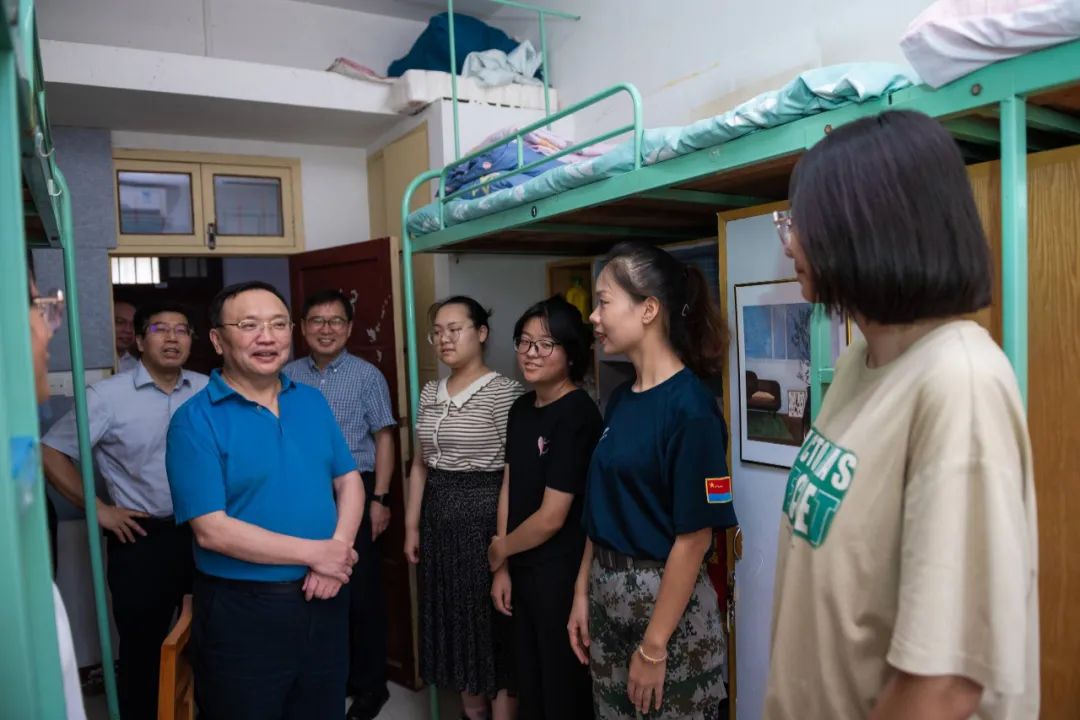 开学当日,校党委书记夏立新、校长彭双阶、副校长任友洲等一行走访看望新生。“今天天气比较热,报到顺利吗”“来到华师,对学校环境满意吗”“住在一个寝室是缘分,大家要相互照顾”“希望你们好好学习,珍惜时光,学校会努力为大家提供良好的学习和生活条件”……校领导一行先后走访了东区学生宿舍9栋、国交学生宿舍5栋和南湖学生宿舍12栋、13栋,看望了数学与统计学学院、外国语学院、国际文化交流学院、体育学院、计算机学院2024级新生,了解同学们生活情况,勉励他们在华师有更好的成长与发展。