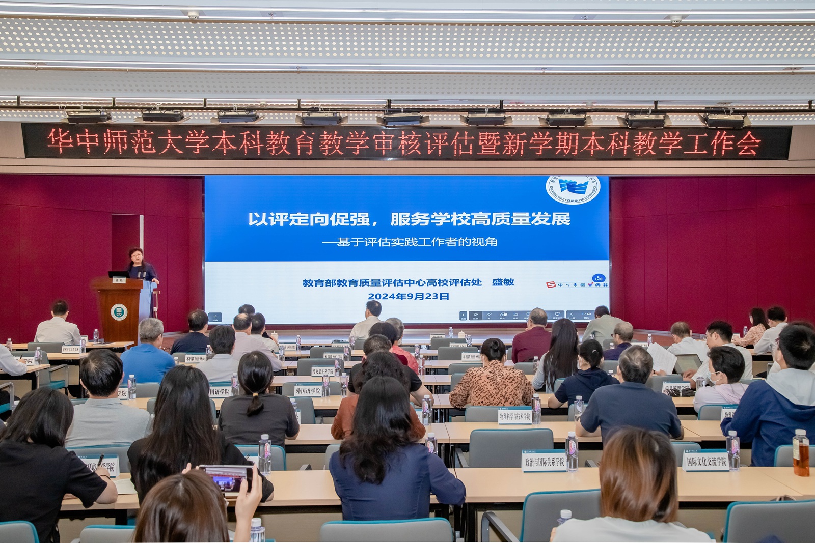 教育部教育质量评估中心高等教育院校评估处处长盛敏以《以评定向促强服务学校高质量发展》为题,围绕把握新一轮审核评估大局大势、扎实做好新一轮审核评估工作两个方面,阐述了新一轮审核工作应该“怎么来看”“怎么来做”“怎么来用”三个问题。她强调,新一轮审核评估以服务发展为出发点和落脚点,既要当好抓手,服务高等教育高质量发展,也要当好帮手,服务学校教育教学质量的全面提升;旨在帮助高校更加聚焦立德树人根本任务,更加聚焦世界一流大学建设目标,更加聚焦OBE(基于学习产出的教育模式)落地最后一公里,更加聚焦内部质保体系建设。针对立博体育app官网实际,盛敏就如何扎实有效开展审核评估工作提出具体建议,希望立博体育app官网以新一轮审核评估为契机,全面审视学校发展定位与经济社会发展适应度、匹配度、贡献度,真正从中受益、实现高质量发展。