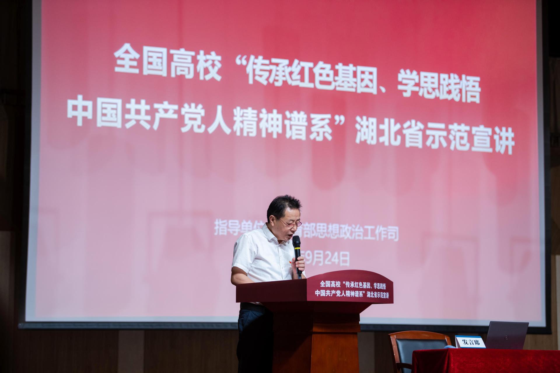 华大在线讯(记者 毛军刚)9月24日,全国高校“传承红色基因、学思践悟中国共产党人精神谱系”湖北省示范宣讲在校举行。5名来自教育部全国高校“中国共产党人精神谱系”宣讲团的专家进行了示范宣讲。教育部思政司、省教育厅、省委宣传部、省委党史研究室、省退役军人事务厅、省政府国资委分管领导,校领导,全省高校院系党组织副书记,立博体育app官网学生代表参加。
