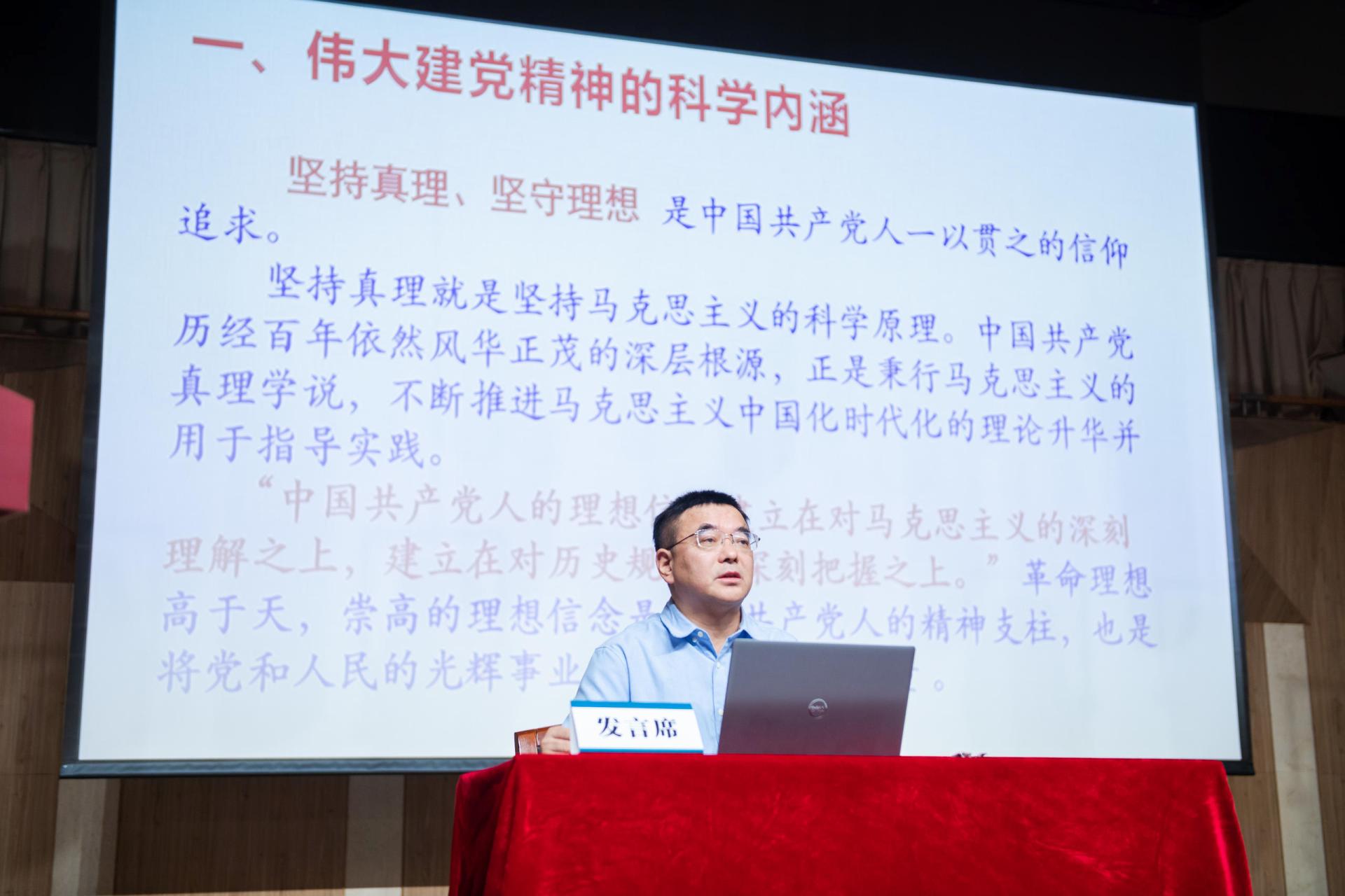 武汉大学马克思主义学院院长罗永宽从科学内涵、精神之源、伟大意义三个方面,对伟大建党精神进行了具体释讲。伟大建党精神从要义层次和内在关系上充分彰显了真理性、实践性、斗争性、人民性,昭示了中国共产党人的精神品格、政治追求、宗旨立场、道德原则。我们要学深悟透伟大建党精神的要义和真髓,坚守其价值内核,内化为对中国共产党持久、自觉而真挚的认同,筑牢信念之基、补足精神之钙,立报国强国大志向、做挺膺担当奋斗者,努力成为在社会主义现代化建设中可堪大用、能担重任的栋梁之才!