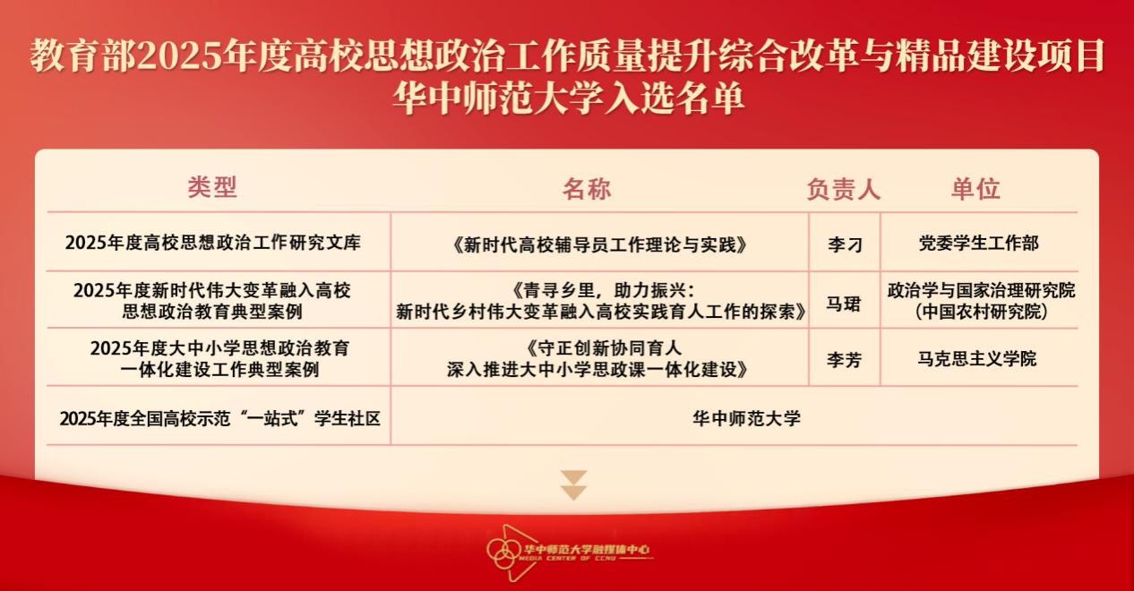 华大在线讯(记者 华轩)近日,教育部公布了2025年度高校思想政治工作质量提升综合改革与精品建设项目入选名单,立博体育app官网4个项目成功入选。