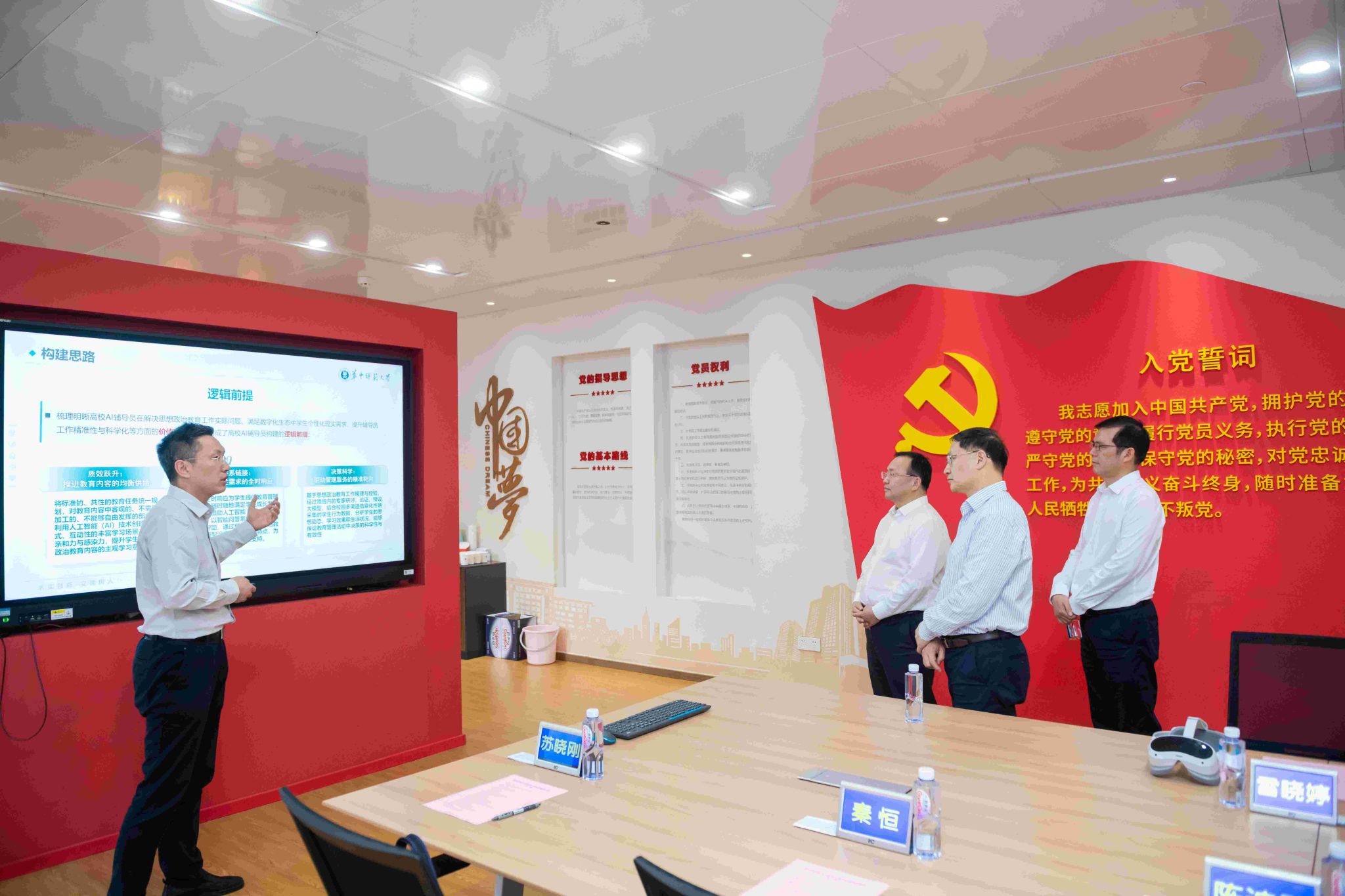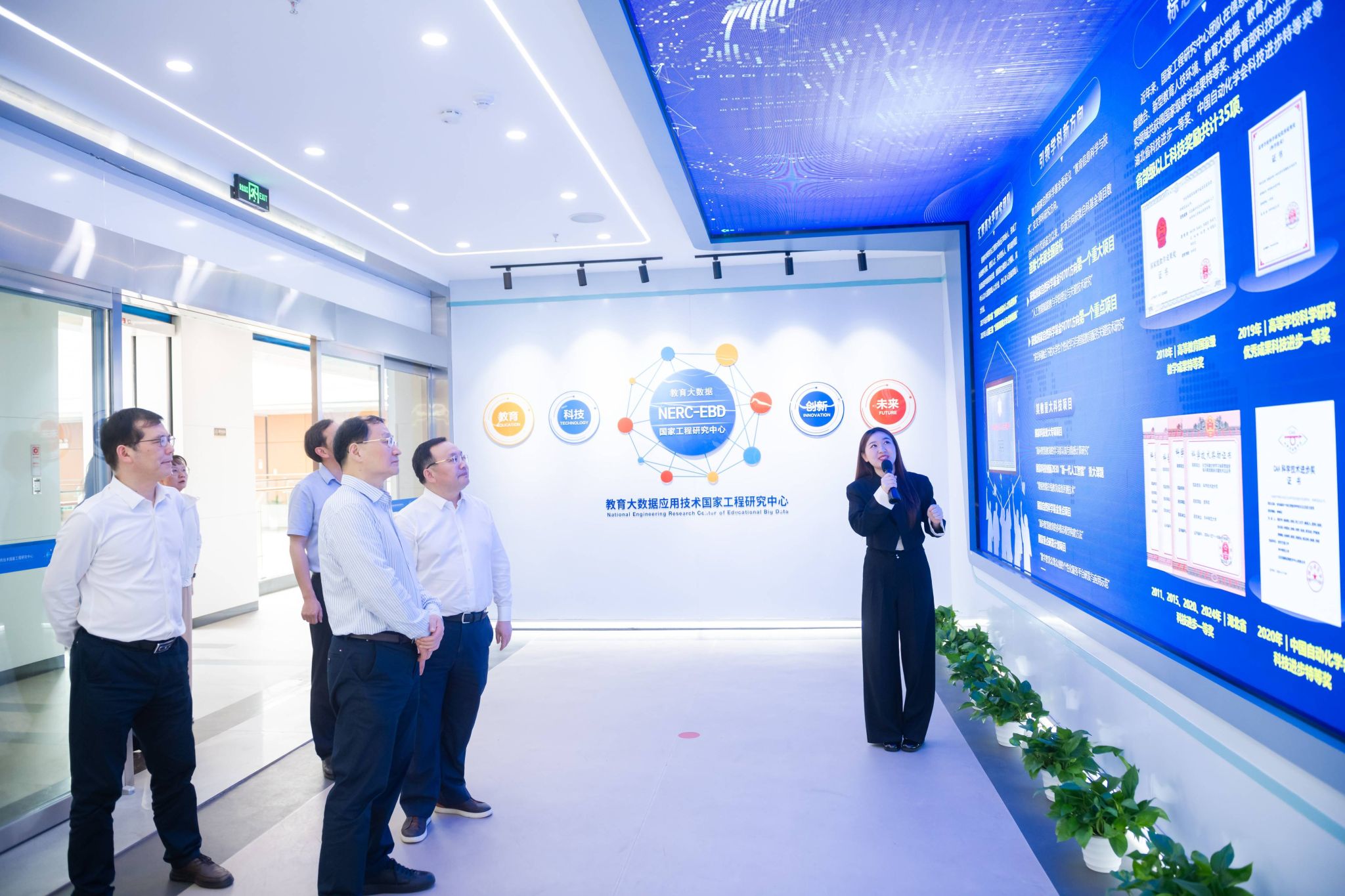 调研期间,魏士强一行实地考察了文学院中国语情与舆情研究中心、教育大数据国家工程研究中心,听取了立博体育app官网推进教育数字化建设、宣传思想文化工作、AI辅导员工作等方面的汇报。