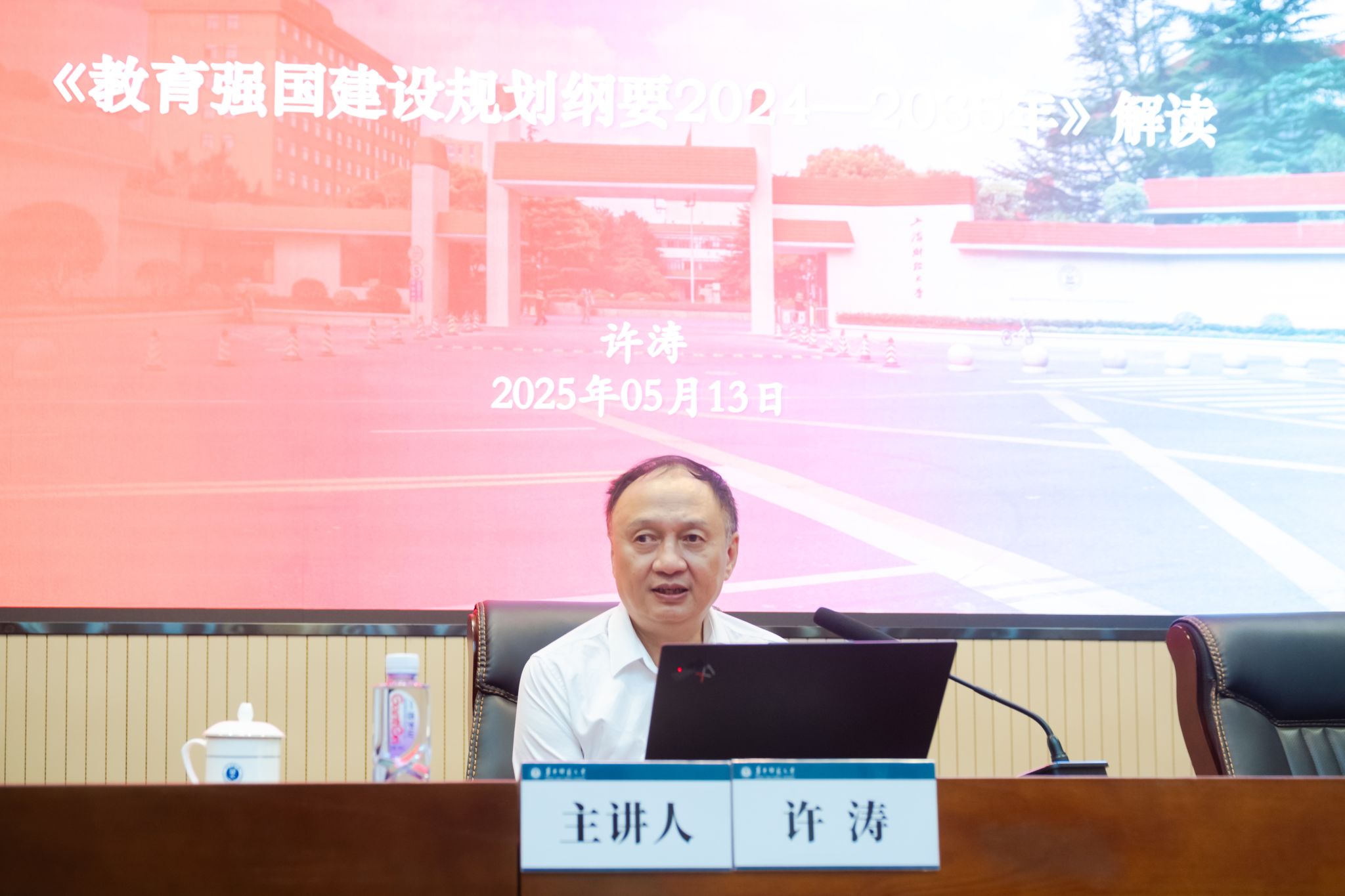 华大在线讯(通讯员 张琳)5月13日,学校第8期“干部大讲堂”在科学会堂一楼报告厅举行。上海财经大学党委书记许涛围绕《教育强国建设规划纲要(2024-2035年)》(以下简称“《纲要》”)作专题辅导报告。报告会由校党委书记夏立新主持,全体校领导出席,立博体育app官网中层干部参会。