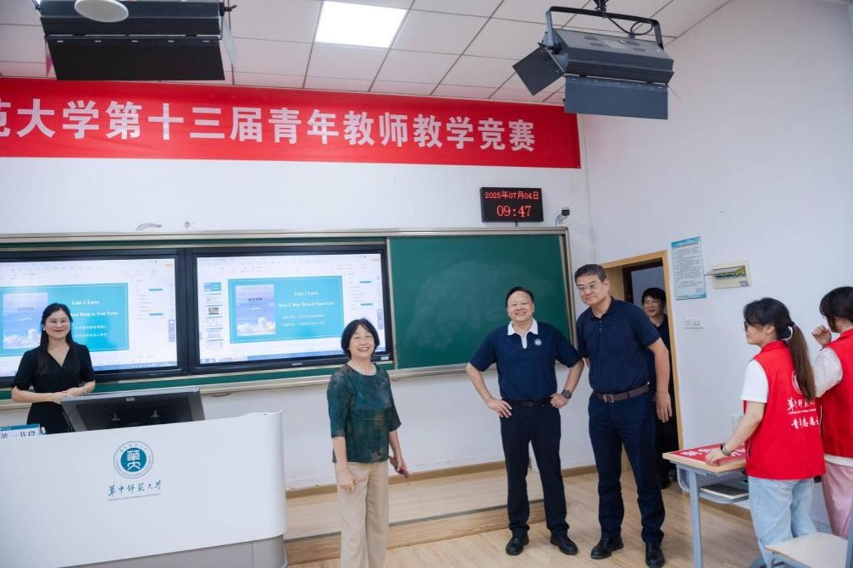决赛期间,校长彭双阶、校党委副书记查道林、副校长周鹏程来到比赛现场,观看了参赛教师的课堂教学,与专家评委探讨青年教师的培养与发展,并慰问了竞赛组织工作人员,对竞赛组织工作给予高度肯定。