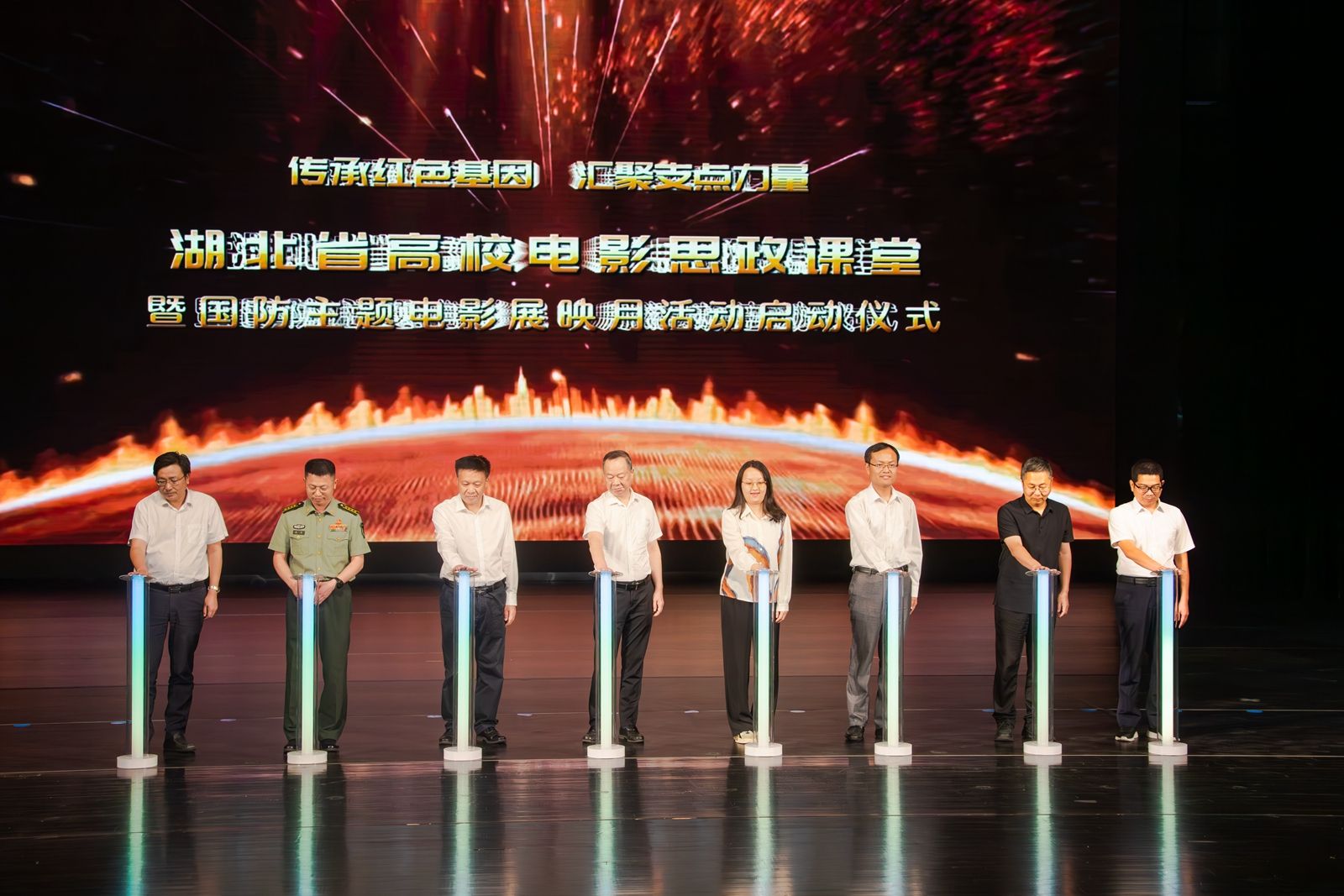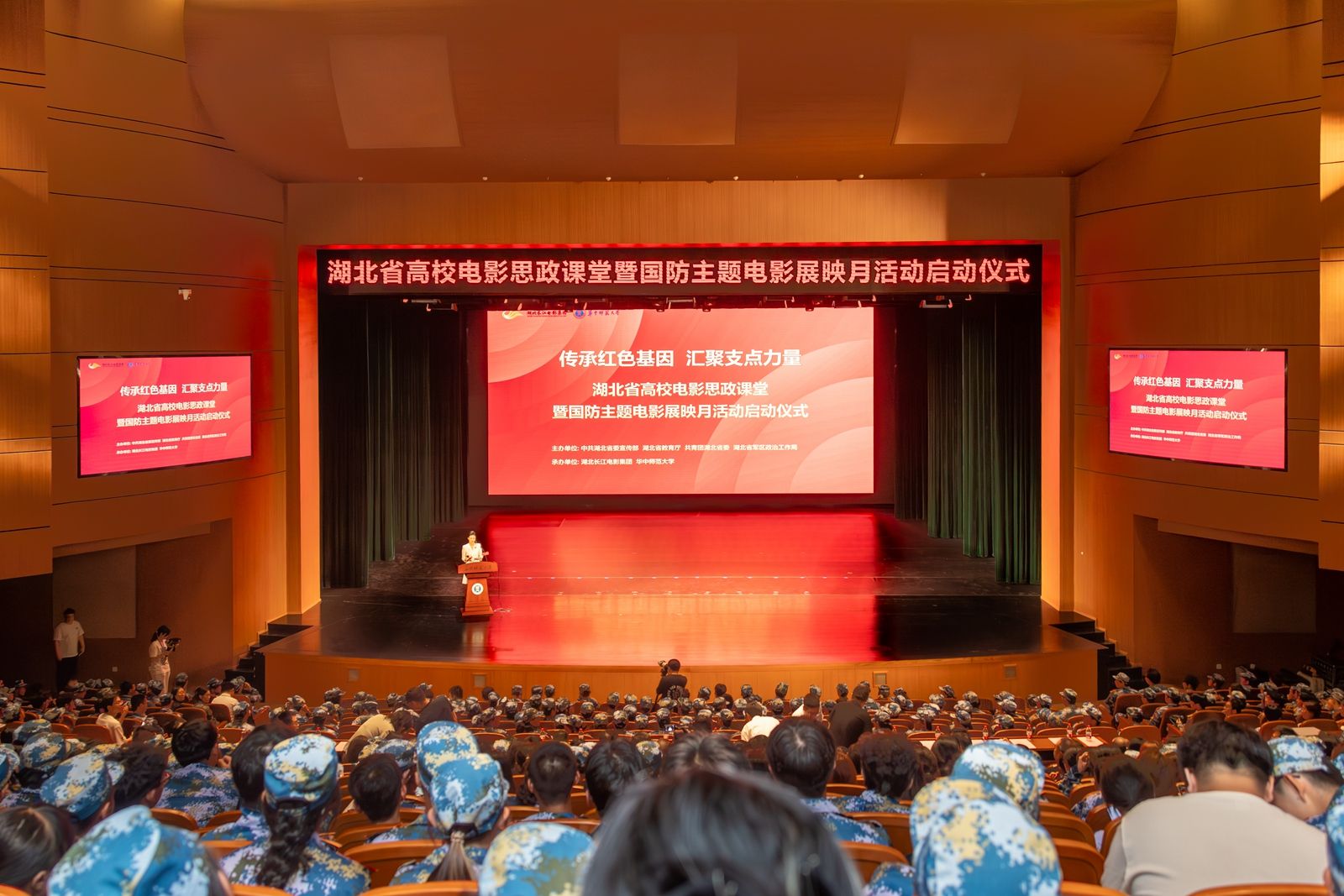 华大在线讯(记者 华轩)9月18日,由湖北省委宣传部、湖北省教育厅、团省委、湖北省军区政治工作局联合主办,湖北长江电影集团、立博体育app官网承办的“传承红色基因·汇聚支点力量”湖北省高校电影思政课堂暨国防主题电影展映月活动启动仪式在大学生活动中心大礼堂举行。湖北省委宣传部二级巡视员李府平,中宣部电影局市场处干部薄君阳,湖北省教育厅二级巡视员黄念平,团省委副书记徐本禹,湖北省军区政治工作局大校副主任张欣,中影创新电影发展(北京)有限公司副总经理周杰,副校长刘宏达,湖北长江电影集团党委副书记、总经理谢云出席活动,湖北省直有关单位部门、省内高校相关部门负责同志以及立博体育app官网师生代表1000余人参加活动,同上一堂电影思政课。