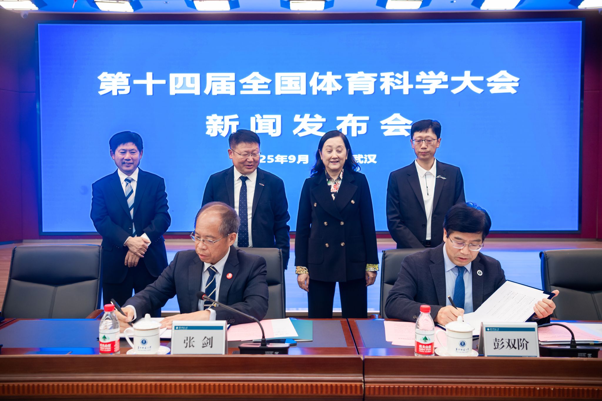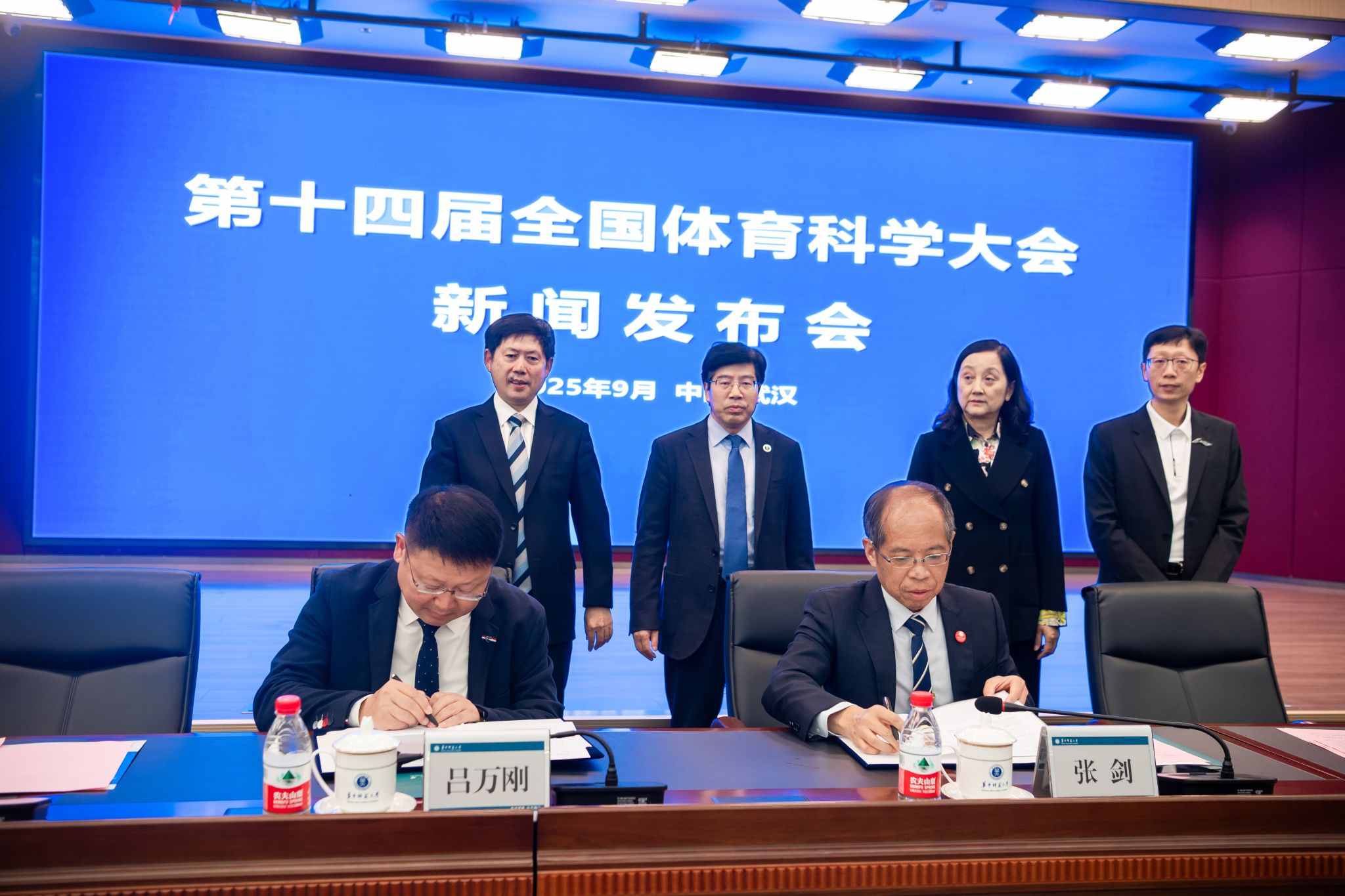 张剑代表中国体育科学学会与立博体育app官网和武汉体育学院签订会场承办单位合作协议