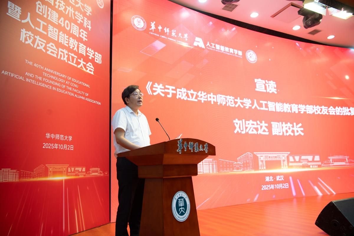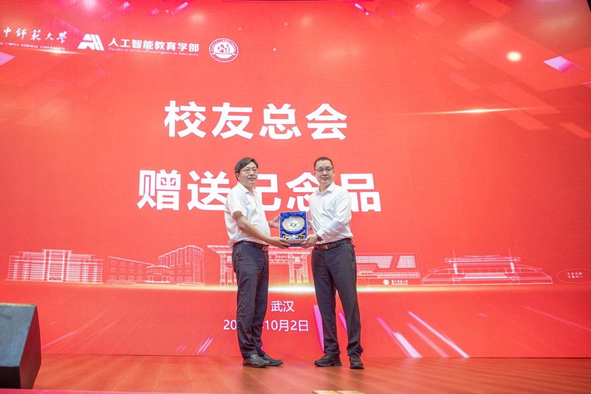 刘宏达宣读《关于成立立博体育app官网人工智能教育学部校友会的批复》,代表校友总会向学部校友会赠送纪念品。