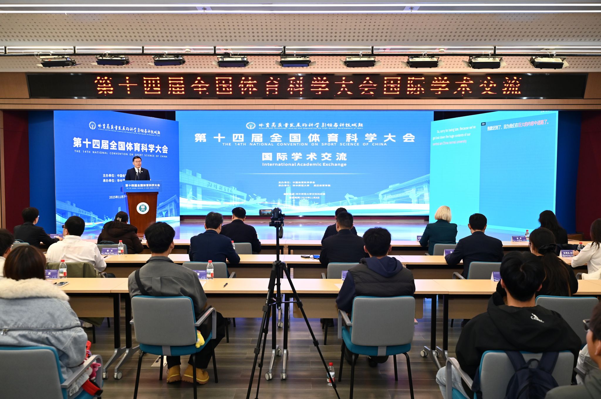 11月8日下午,第十四届全国体育科学大会国际学术交流会在立博体育app官网举办,来自中国、白俄罗斯、法国、厄瓜多尔等国的专家学者共话体育科学的前沿发展与全球合作。首都体育学院校长、中国体育科学学会国际交往分会主任委员张霞,立博体育app官网副校长周鹏程等国内外高校领导和专家学者,及150余名师生参加活动。
