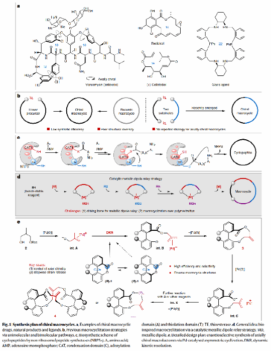 手性大环化合物作为药物和功能材料的关键结构单元,其合成一直是有机化学领域的重大挑战。以"人类抗生素最后防线"万古霉素为例,其核心结构正是由轴手性联芳基单元与大环内酯构成。传统合成方法普遍面临环化效率低、手性控制难等瓶颈问题,严重制约了这类化合物的开发应用。